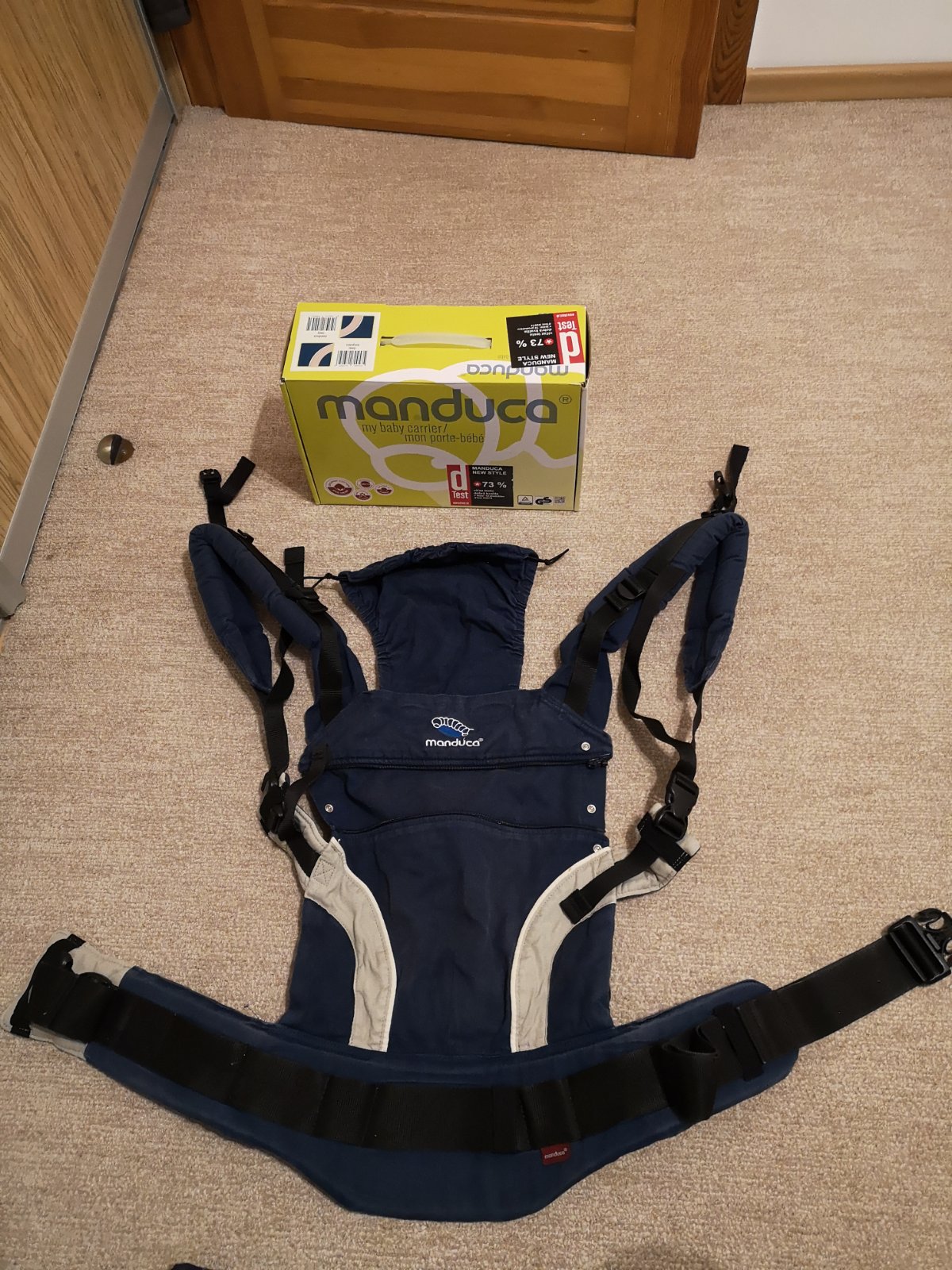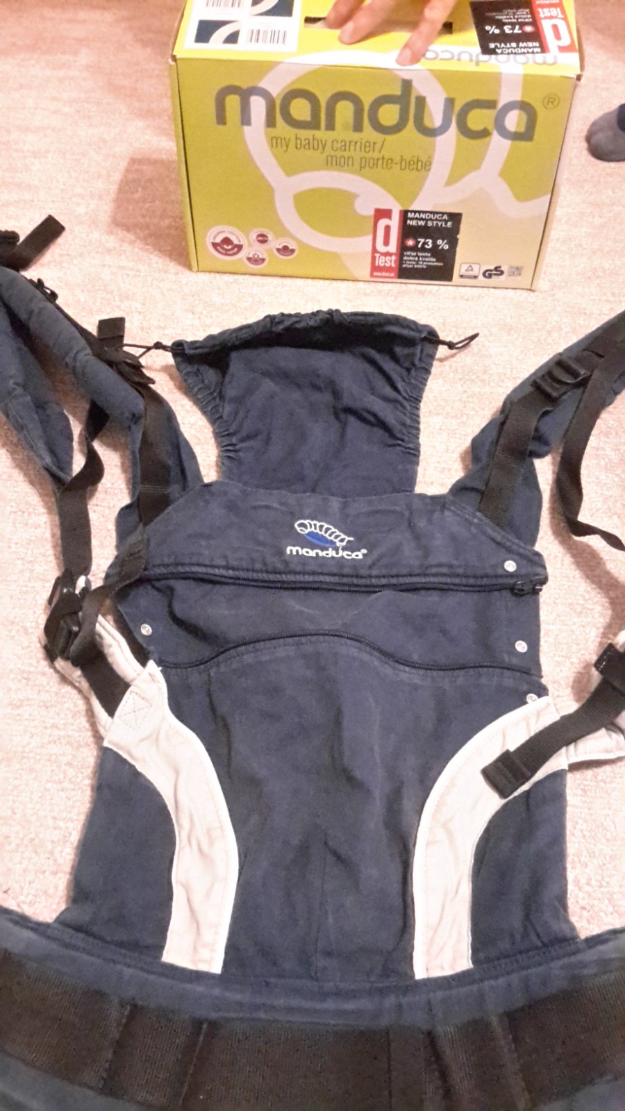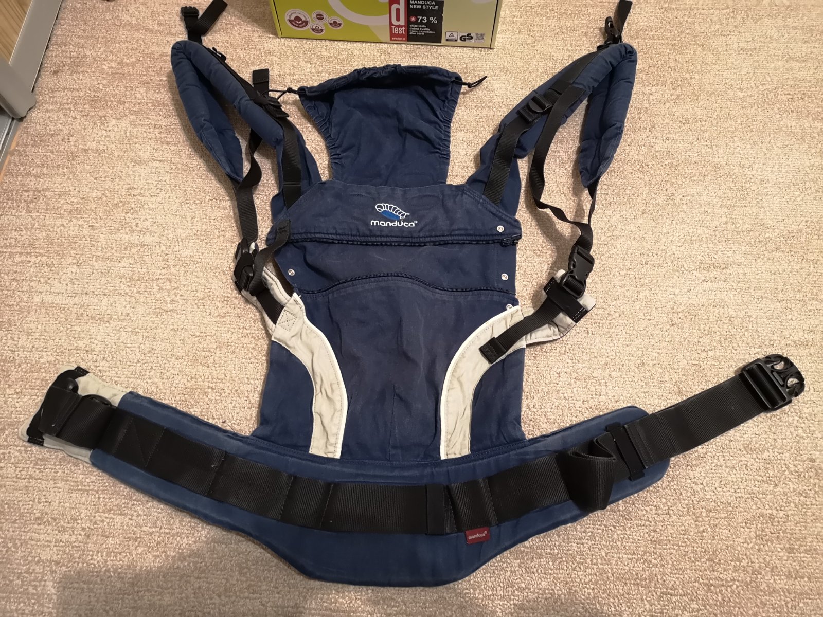 Manduca ergonomicky nosic. Pouzivany, prany (farba tymto trochu vybledla) , cisty, plne funkcny. Vhodny od narodenia po 20 kg. Material: organicka bavlna a konope. Osobny odber mozny v PO.