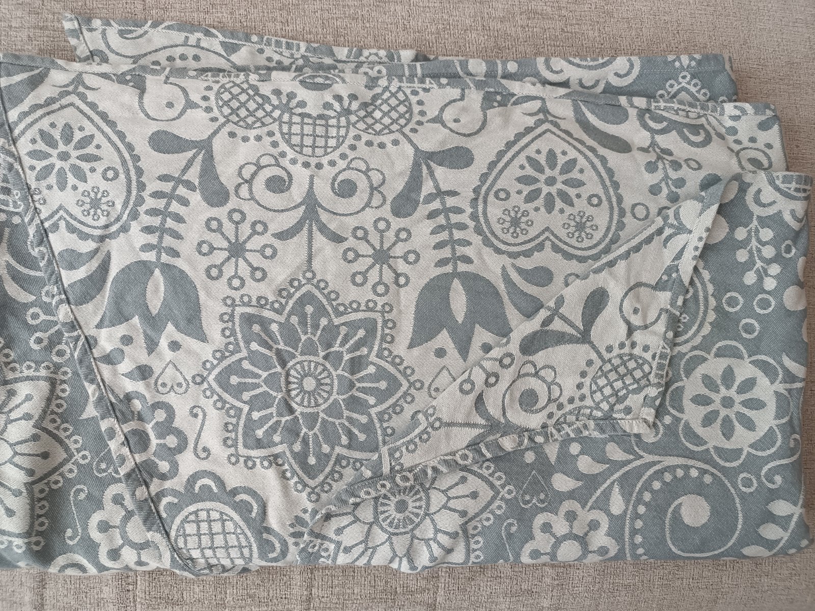 Predám šatku Didymos žakár sivé/strieborné vlny. Veľkosť 6 (470cm) Materiál 100% biobavlna, gramáž cca 200g/m2. Kupovaná nová z Nemecka, používaná pri dcére od jej 2 týždňov veku do cca 6-8 mesiaco...
