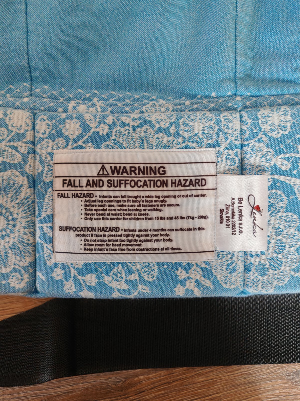 Nosena len par krat. Kedze nam prisla neskoro. Vhodna od 3m do 18m. Rastuca velkost 1. Velkost sa upravuje utahovanim Mozno pouzit so sirokymi aj uzsimi popruhmi. Da sa nosit do kriza (a je to fakt...