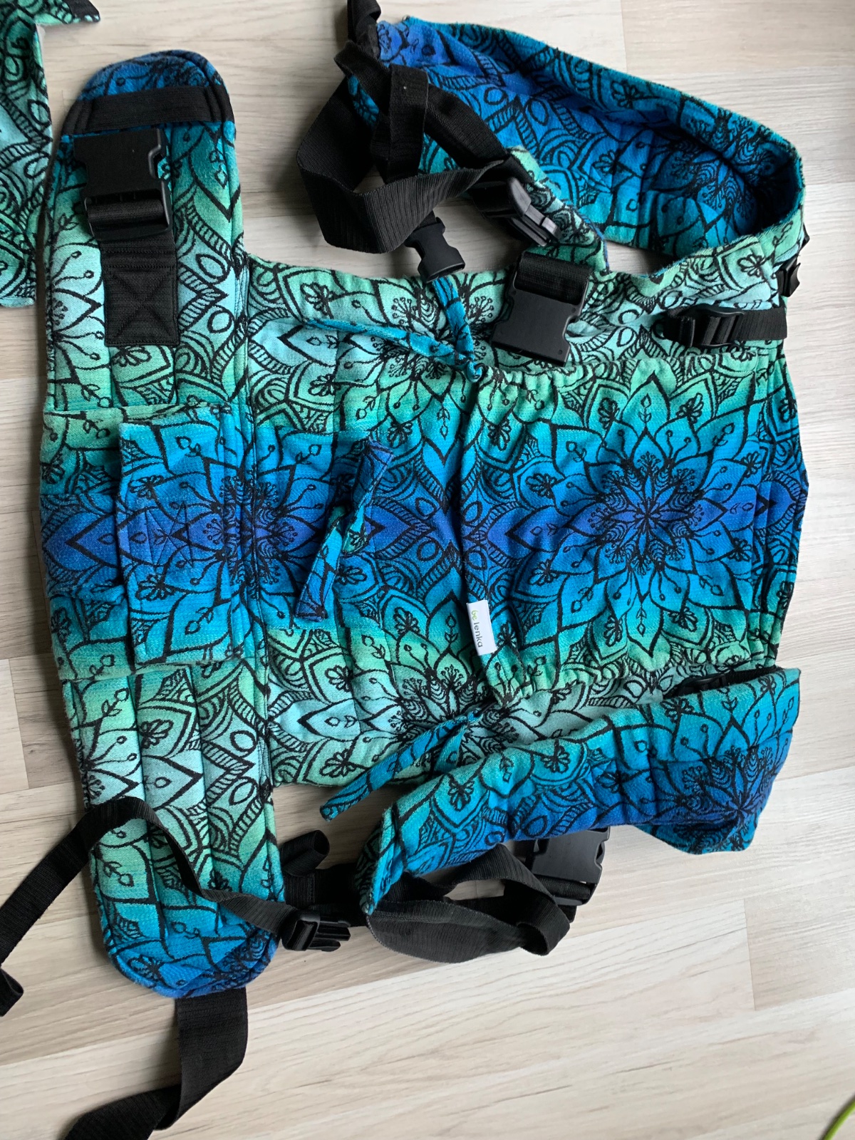 Používaný na striedačku s inými nosičmi a šatkami pri 3 deťoch, takže stále v dobrom stave. Je vidno že nosič bol používaný ale žiadne poškodenia.prane len v eko cistiacom prostriedku Nosnosť 5-2...