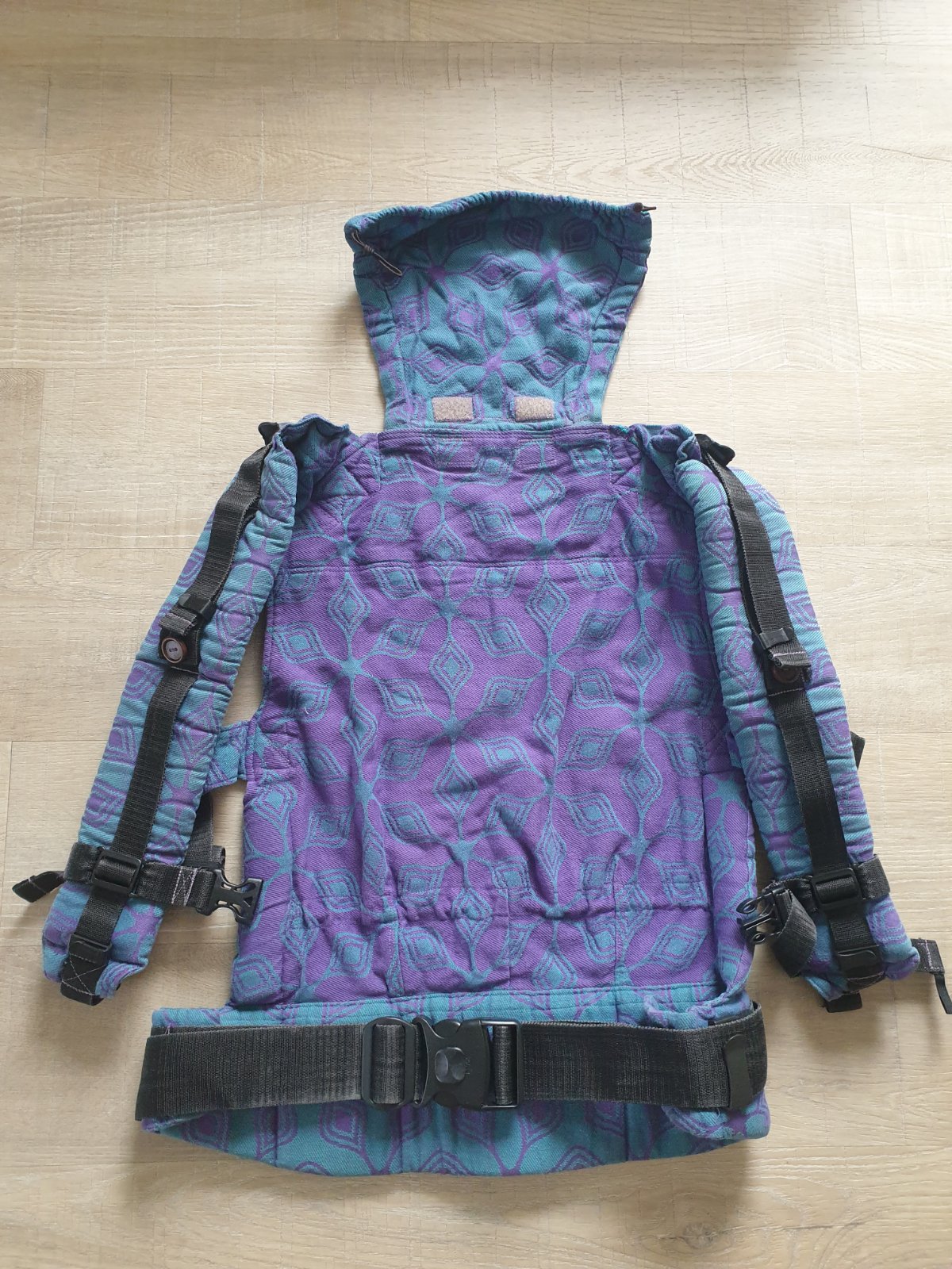 Predám ergonomický nosič Zumbucca, šitý zo šatky Yaro atomium emerald purple.