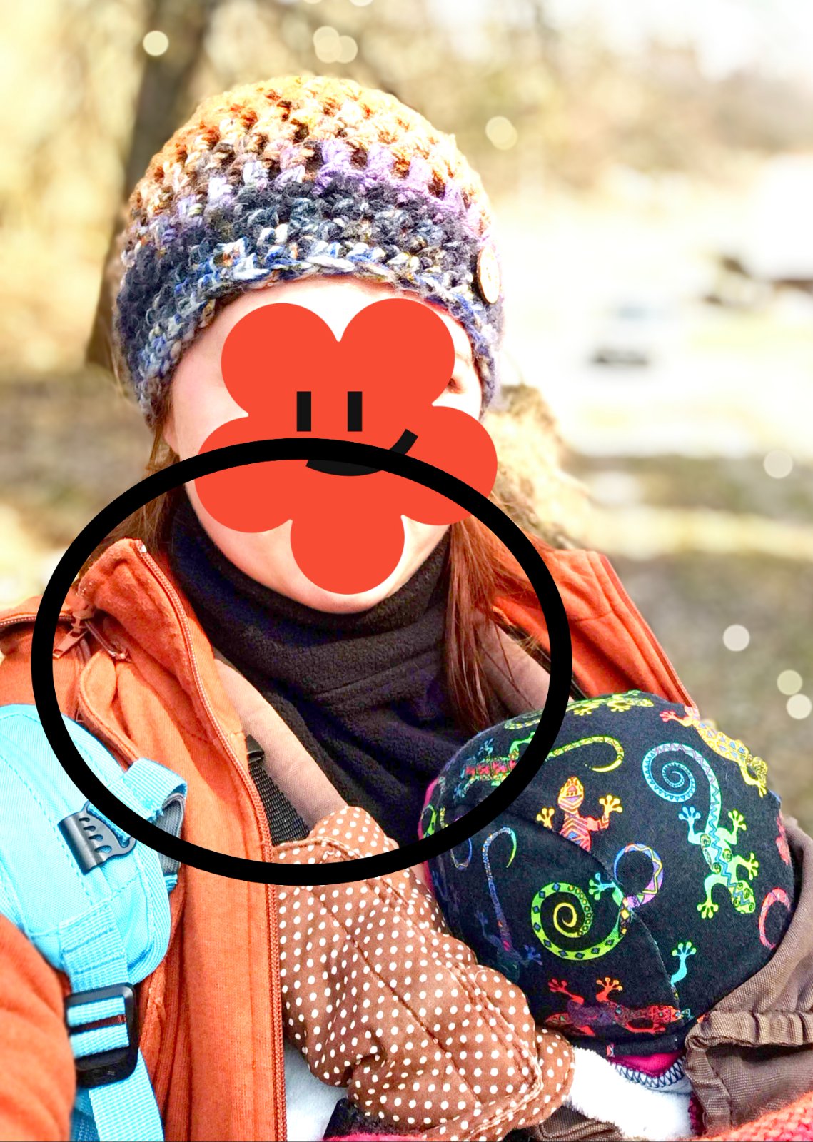 Skvelý doplnok k nosiču. Teplý nákrčník z flisu pre matky a otcov, ktorí nosia svoje deti v ergonomickom nosiči. Vysoký límec chráni krk a predĺžená časť chráni hrudník. V super stave. Zapína sa na suchý zips.