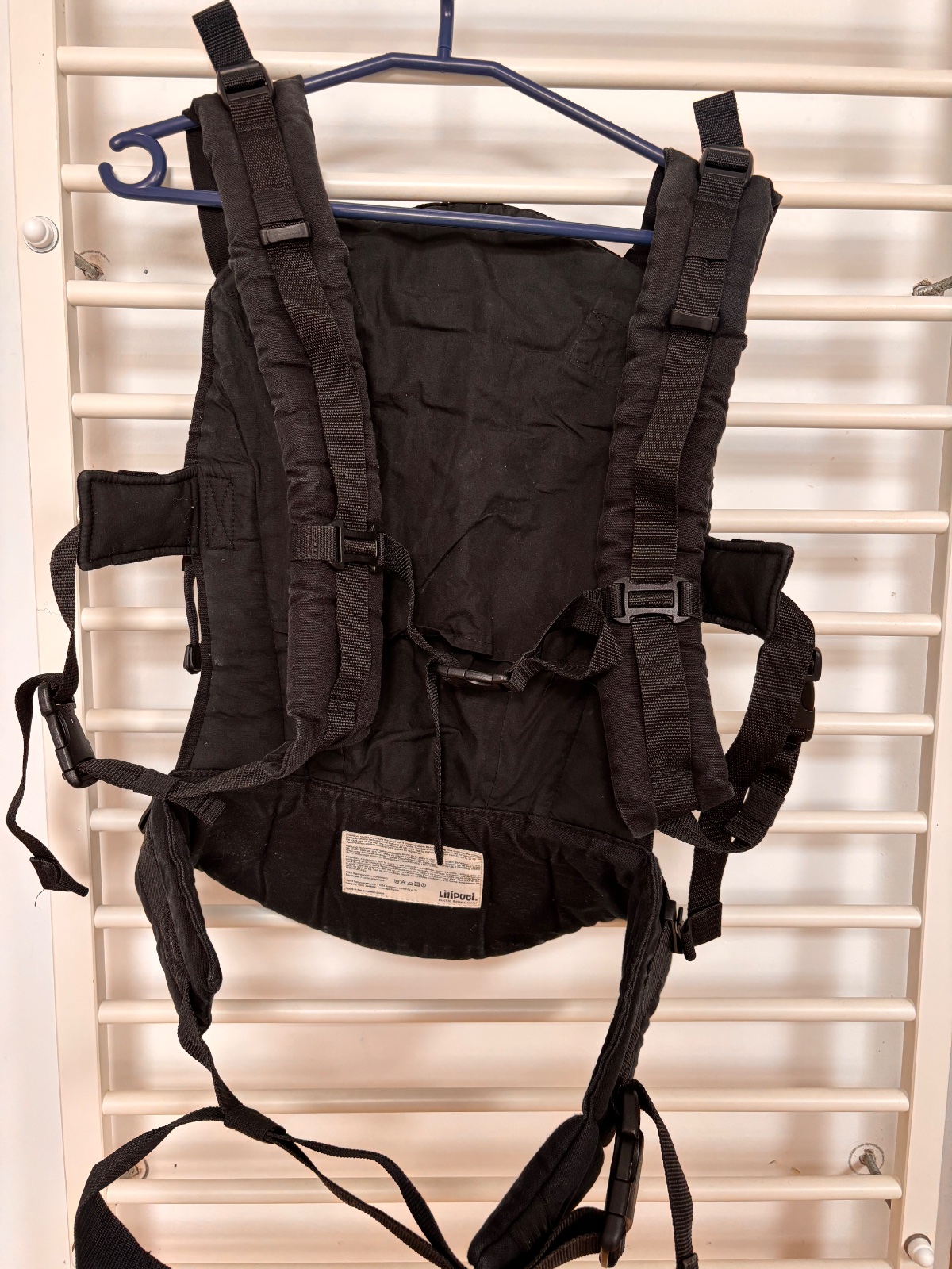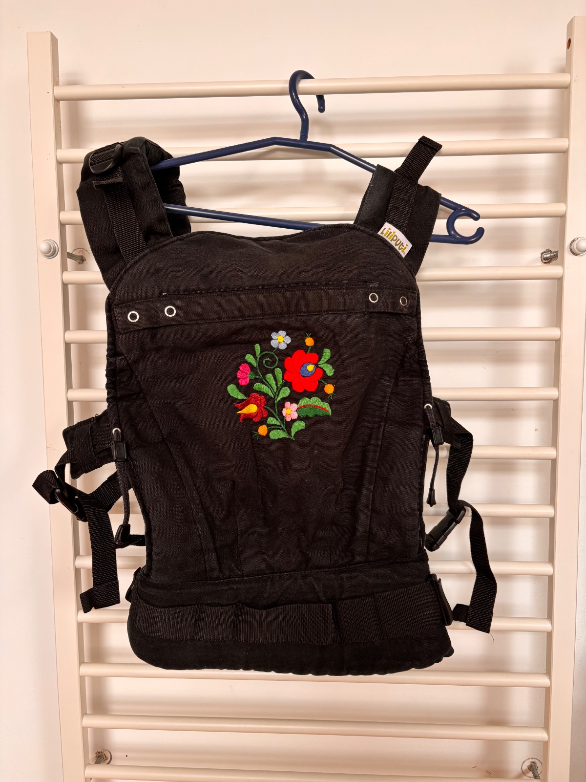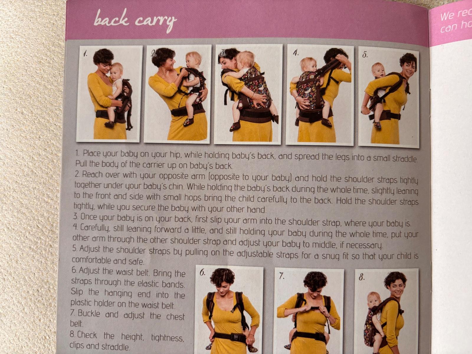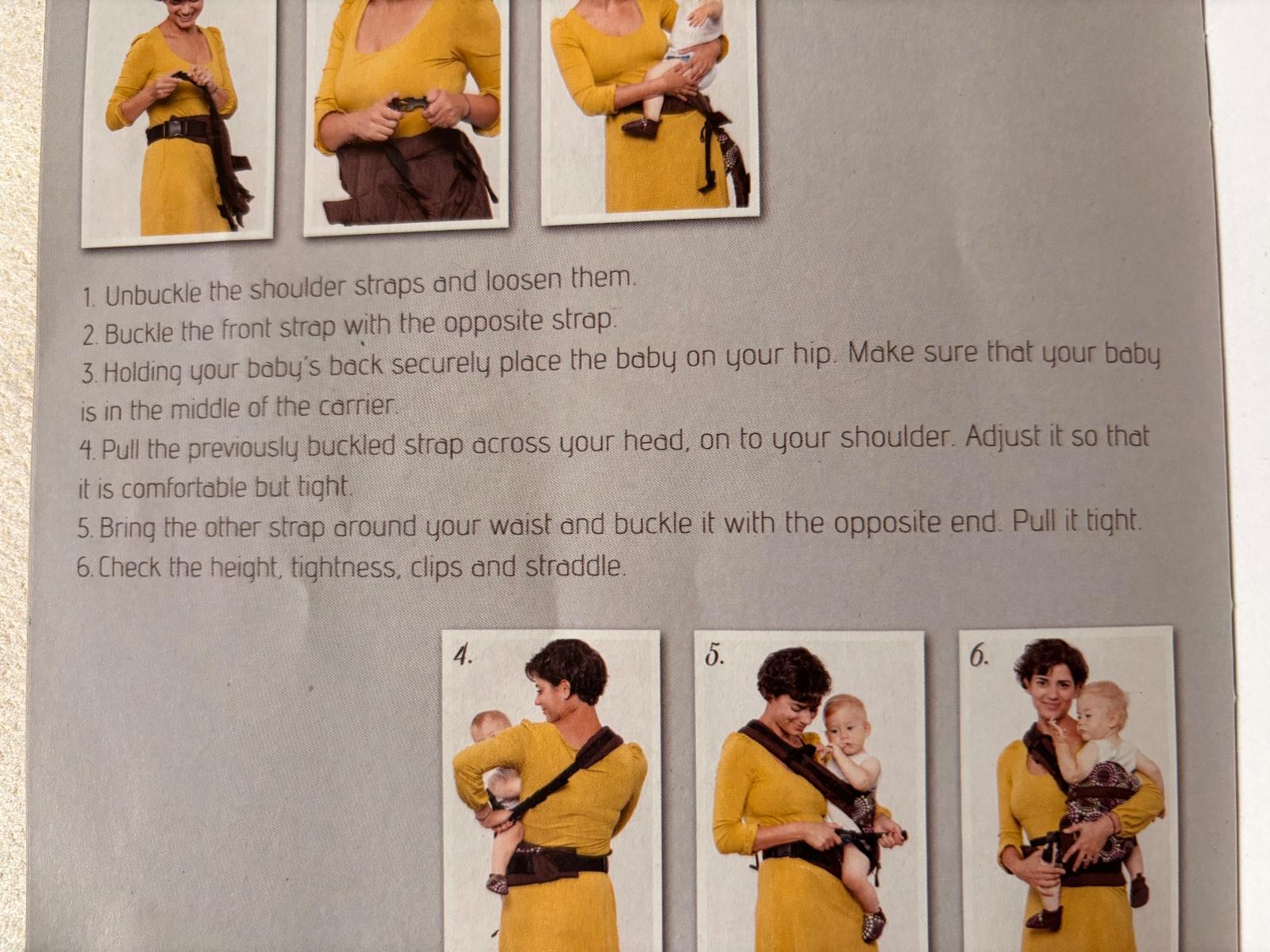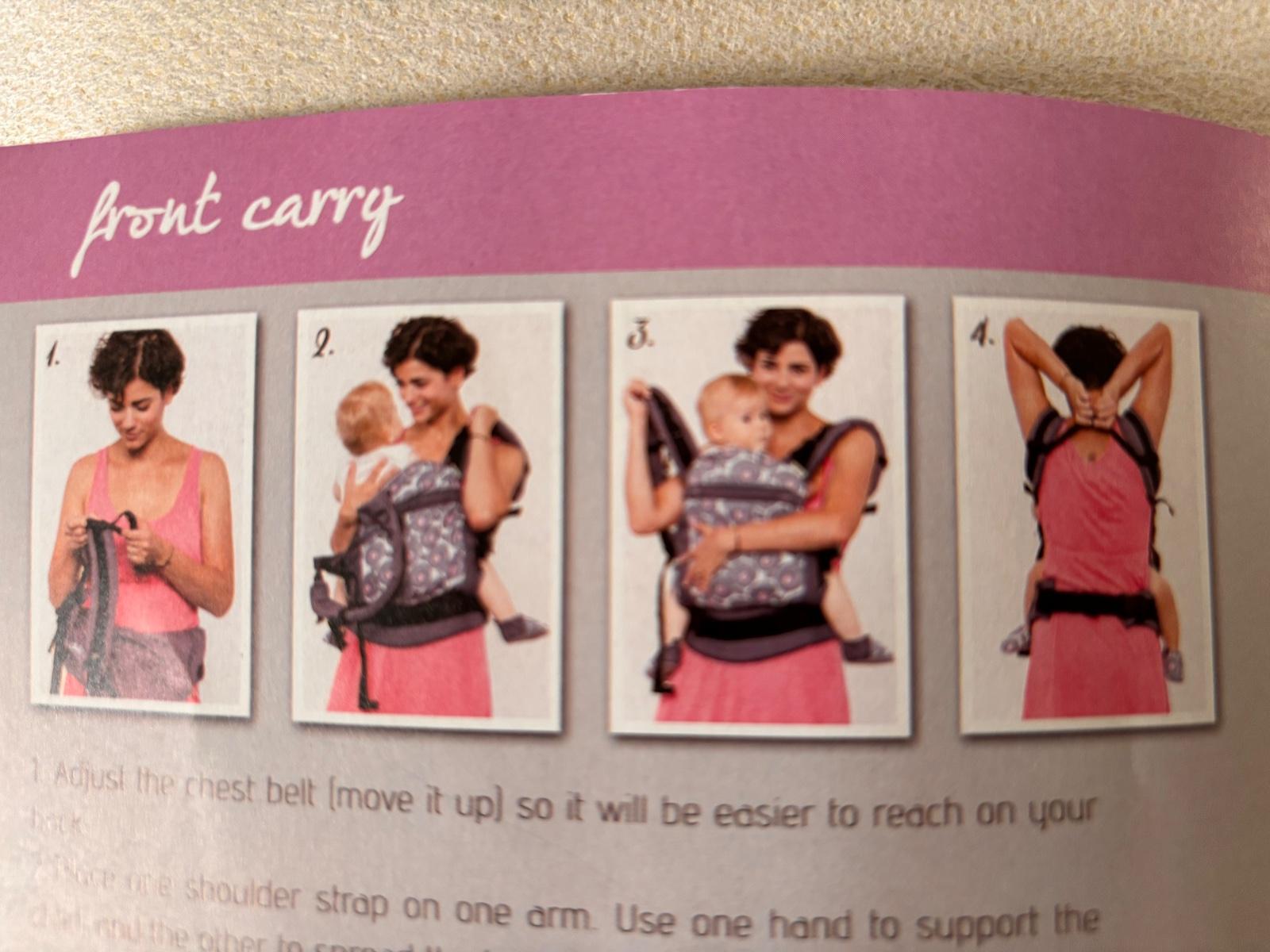 Po jednom dietati, bez poskodenia, len cierna farba trosku vyblednuta, ale je to v ramci normy, pravidelne cistene. Nosenie od 3-20kg. Prilozim knizku o navode na pouzitie. Nosenie je mozne vpredu, na chrbte a na bokoch. Krasny, stylovy kusok.