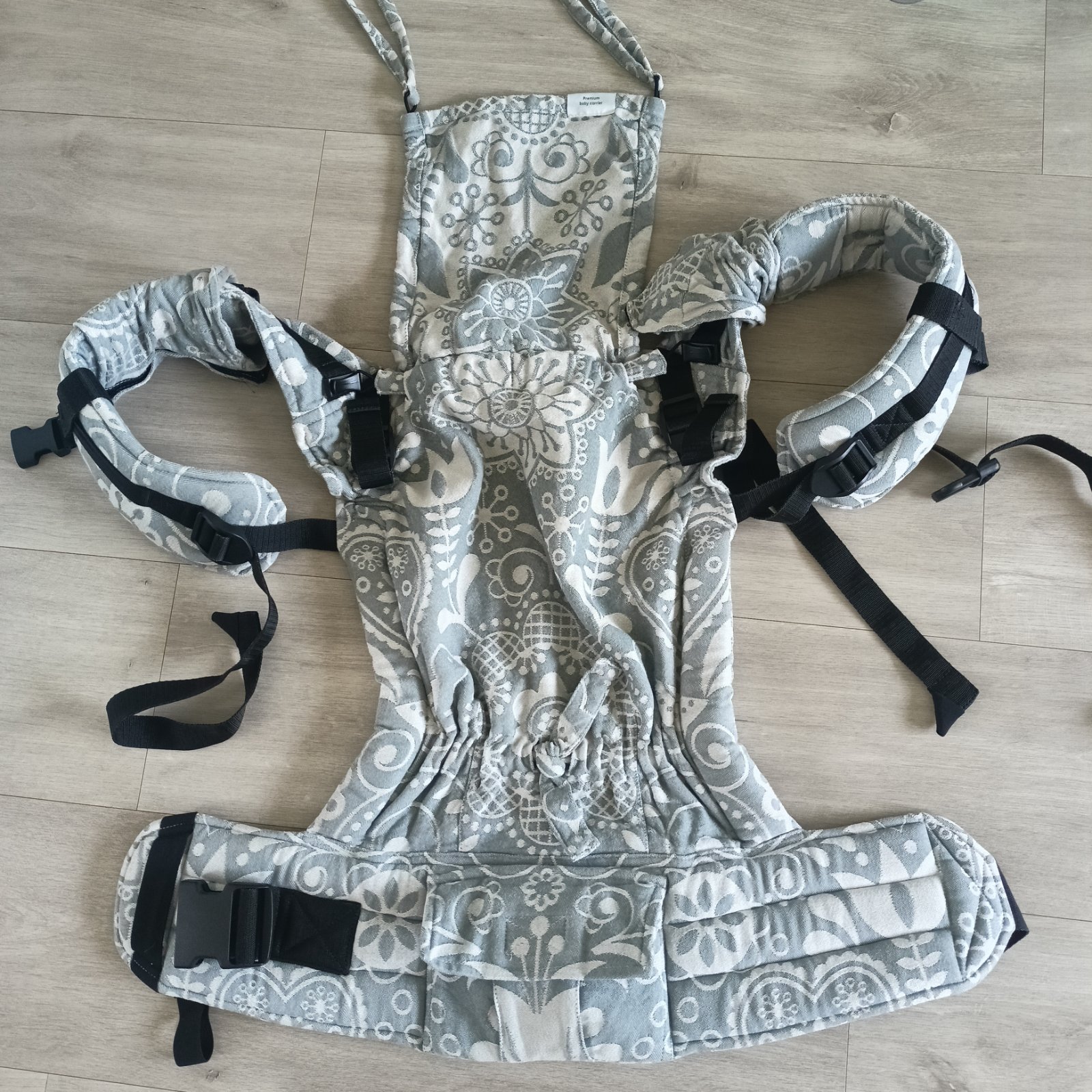 Detský nosič Be lenka 4 ever folk šedý Používaný detský nosič be lenka 4 everso širokými popruhmi s možnosťou kríženia.Slintaky, spojovacia spona súčasťou balenia.