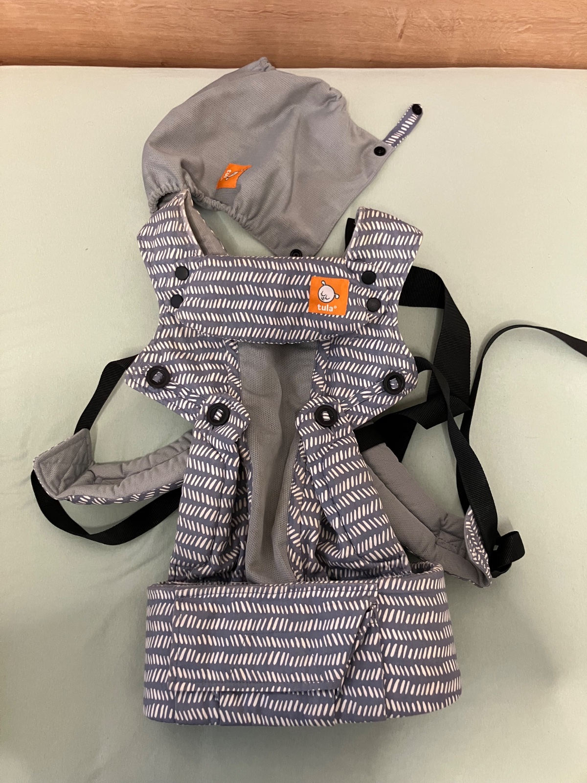 Predám tento veľmi jednoduchý baby nosič. Vhodný pre dieťa od cca 3 mesiacov. Dieťatko sa dá v ňom nosiť tvárou k sebe aj od seba. Je vypraný, má jemné žmolky. Držiak na hlavičku je na cvoky, dá sa...