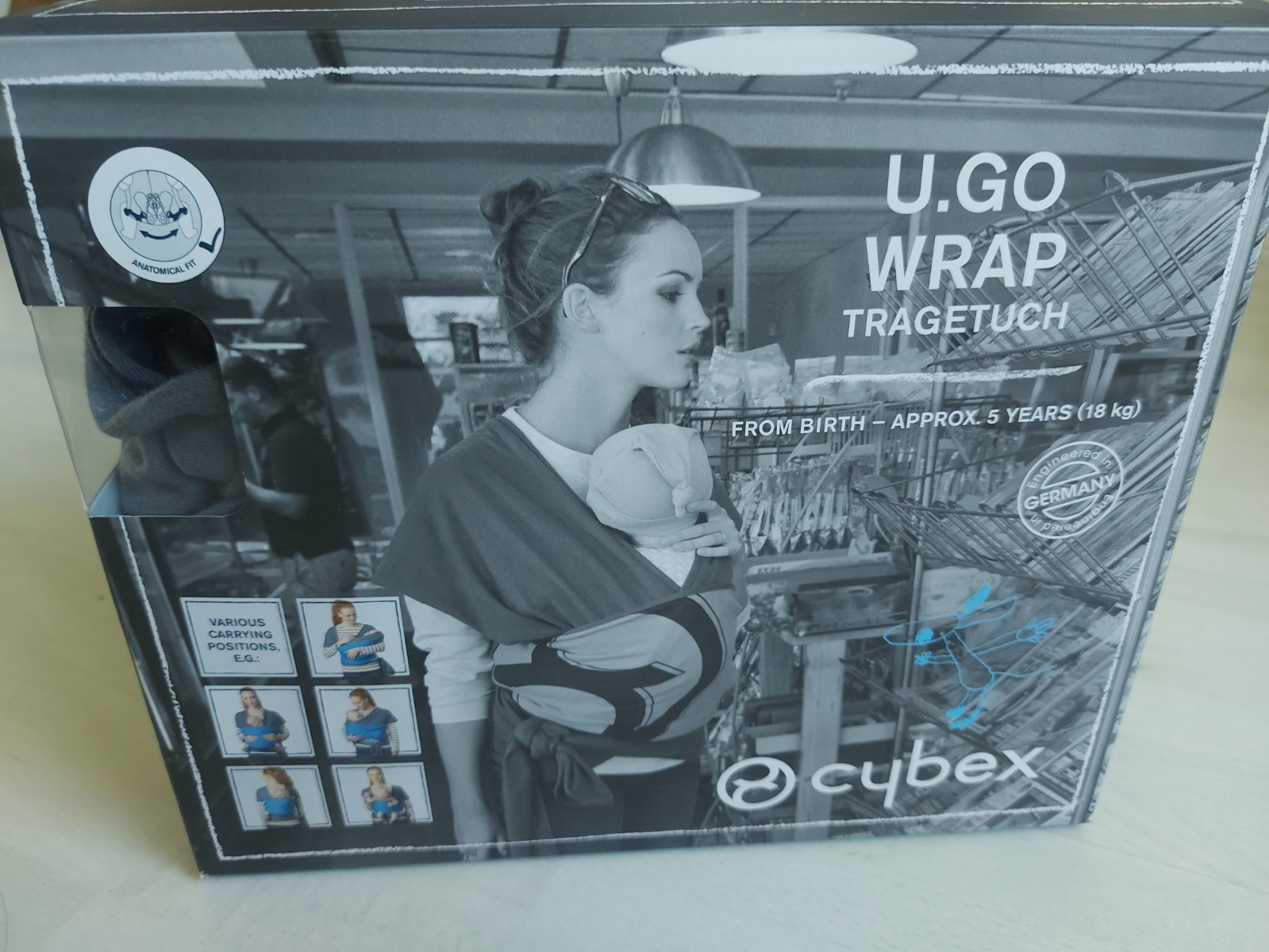 Elasticka satka na nosenie Cybex v sedomodrej kombinacii.