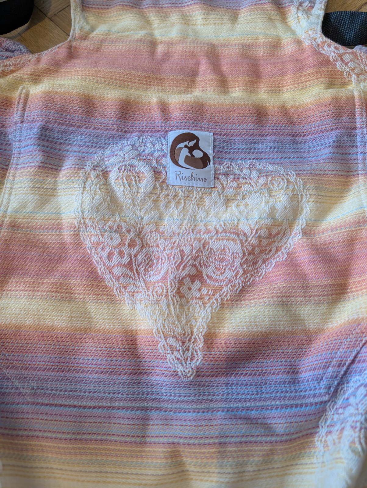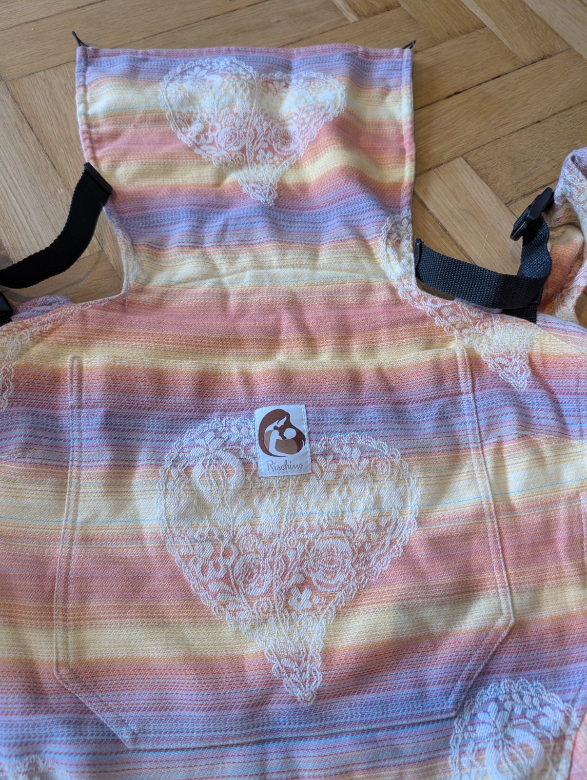 Nosic vhodny od 1 roka do 5 rokov. Nosnost az 25 kg. Nami par krat pouzity. Farby su v skutocnosti viac sytejsie, krasny ludovy vzor. Moznost nosit v predu aj vzadu.