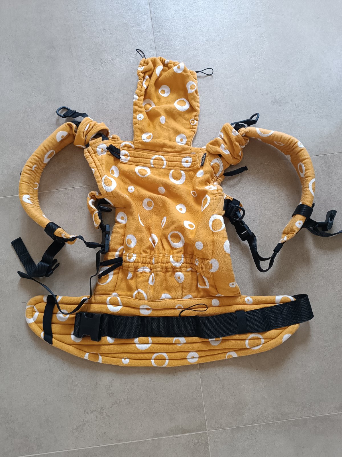 Predám náš krásny nosič Kolekcia Levie srdce v horčicovo-zlatistej farbe s čiernym vzorom. Súčasť nosiča: Kapucňa na fixáciu hlavičky Rolovanie nosiča v prípade nenosenia dieťaťa Regulovanie šírk...
