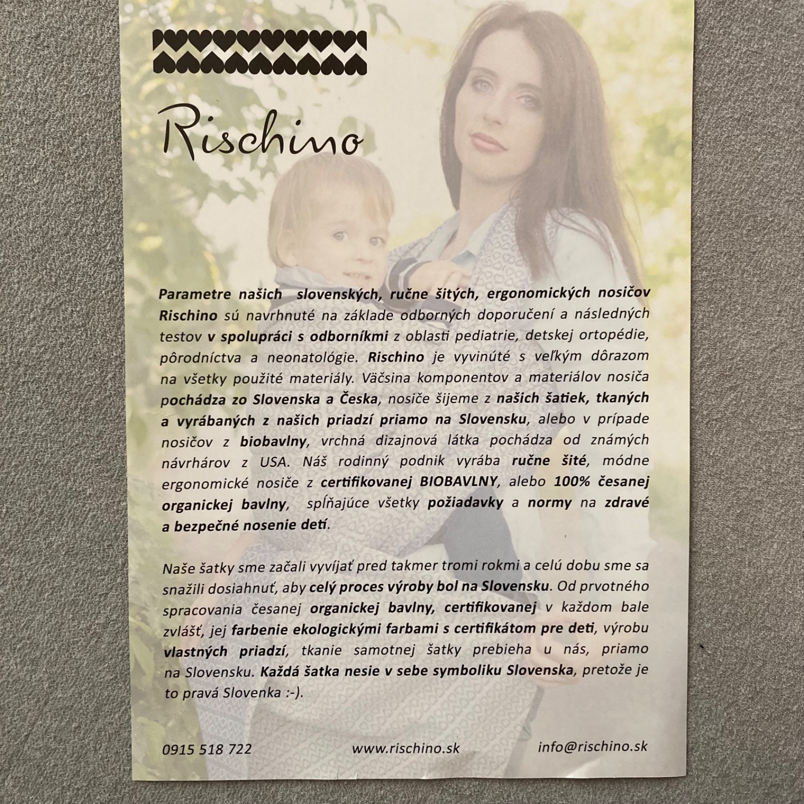 Ergonomický nosič slovenskej zn. Rischino
