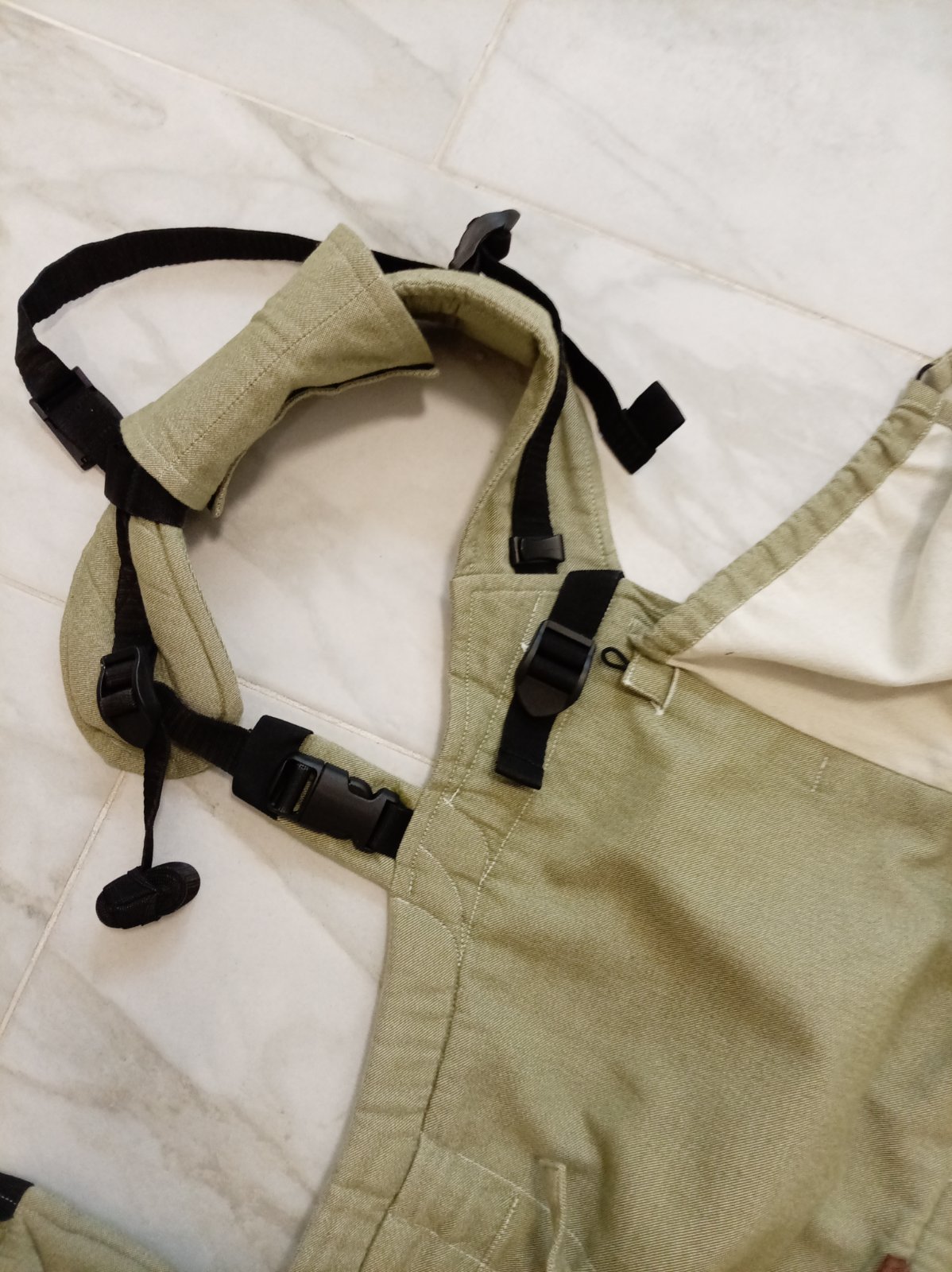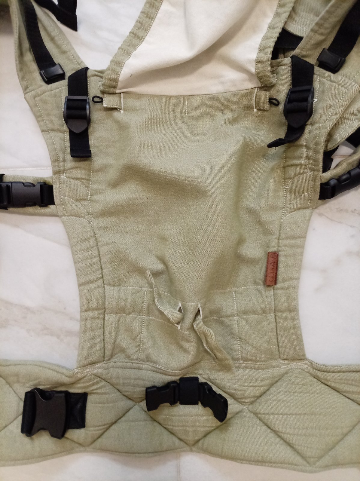 Nosič po mojich dvoch deťoch, ale viac visel než bol použitý. Farba je tvorená kombináciou čiernych a horčicovo žltých nití.