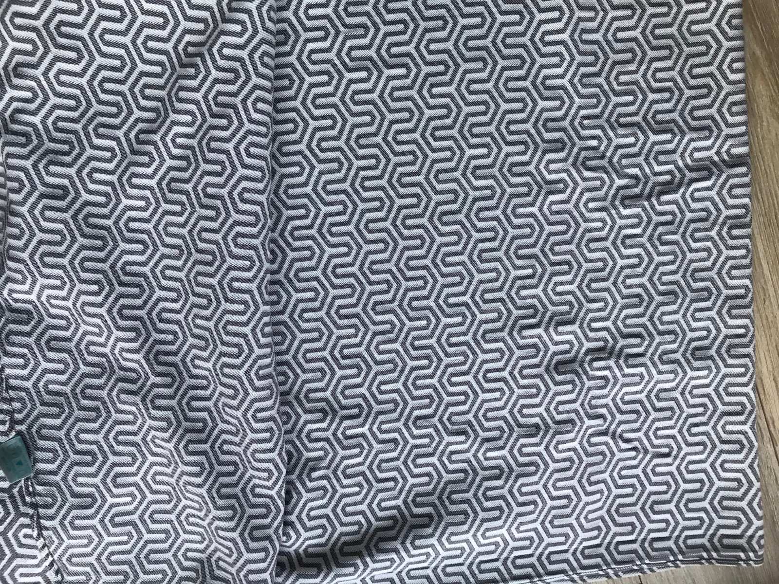 Pavo Form Fable Slate, veľ. 5, 240 gsm, 100% bavlna, som druhá majiteľka, neviem, či bola vypratá pred prvým naviazaním, ale zrejme áno. Farba ecru a šedo-fialová. typická pavovská štruktúra a grip. bombovo sa s ňou viaže a je vhodná naozaj pre všetky kategórie. Bezúdržbová šatka, podľa štítka môže ísť aj do sušičky. Sme nefajčiarska domácnosť bez zvierat, u nás bola praná len v eko prostriedkoch.
