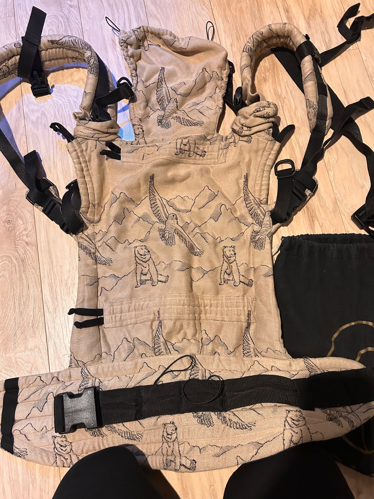 Nosič vo výbornom stave,všetky spony plne funkčné,bez poškodení. Jediné dva malé žlté fliaciky, viď fotka. Na kapucni jedna a na jednom slintáčiku. Praný raz. Ergonomický nosič Flexible je vhodný...