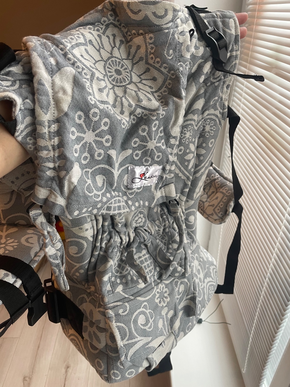 Detský nosič Be lenka 4 ever folk šedý Používaný detský nosič be lenka 4 everso širokými popruhmi s možnosťou kríženia.Slintaky, spojovacia spona súčasťou balenia.
