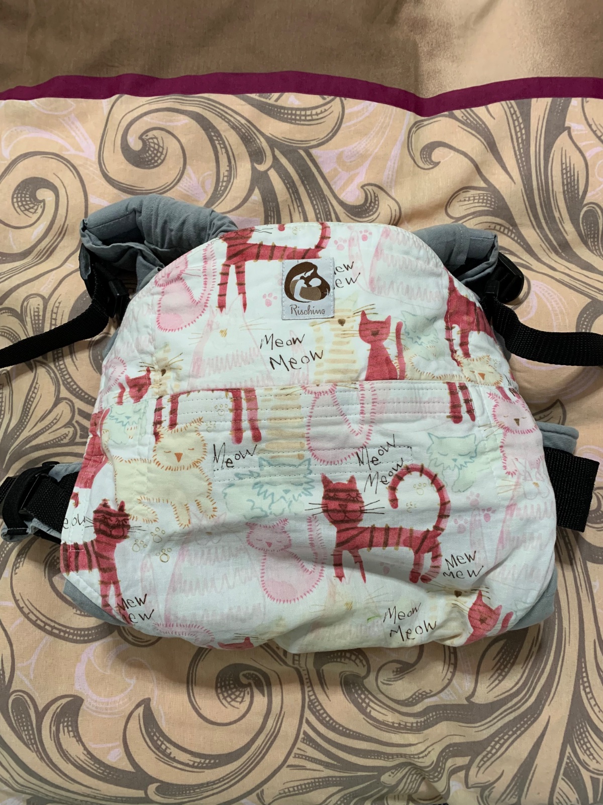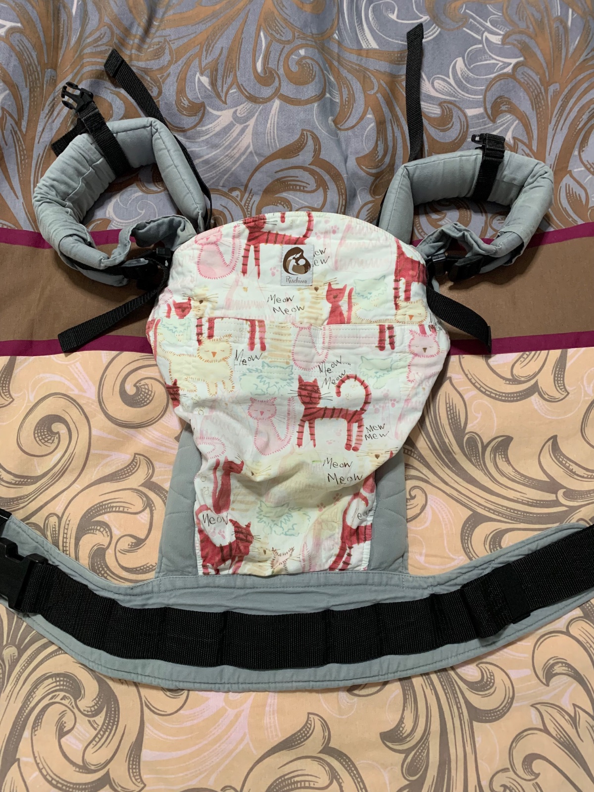 Predám nádherný nosič Rischino s originálnym vzorom v TOP stave. Má novorodeneckú vložku a je teda vhodný pre bábätka od narodenia. Nosič nemá takmer žiadne známky nosenia (mala som dva a tento som používala menej často). Jediným nedostatkom je malý fliačik na bedrovom pase z vnútornej strany vid. foto (pri noseni nie je vidieť). Nosič nie je vyblednúty, vyšuchaný a nemá žiadne vady / poškodenia, je v krásnom stave. Bol vypratý na šetrnom programe.