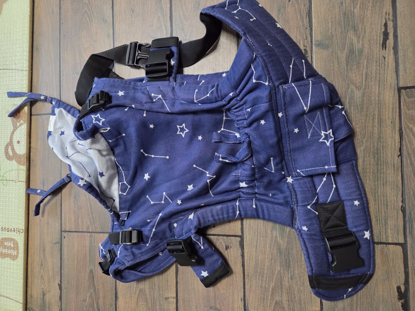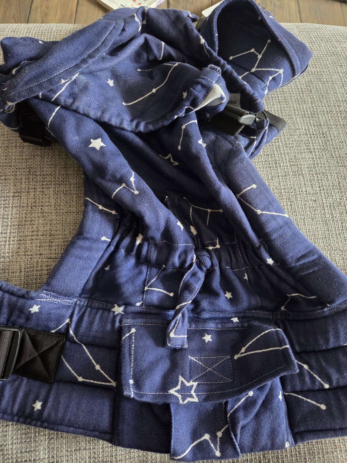 Domácnosť bez zvierat, nefajčiarska, nosič je v bezchybnom stave, praný v modrom Denkmite, bez aviváže, sušený rozprestretý na sušiaku mimo slnka. 100% bavlna. Cena 100€