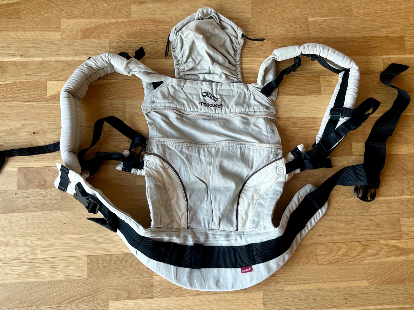 Pouzivana manduca, pekna svetla farba, bez poškodení. Novorodenecká vložka a kapucňa su samozrejmosť. Odber v Košiciach (Staré Mesto, Juh, po dohode inde), PO, SNV, ML, SK, prípadne poslem postou/p...