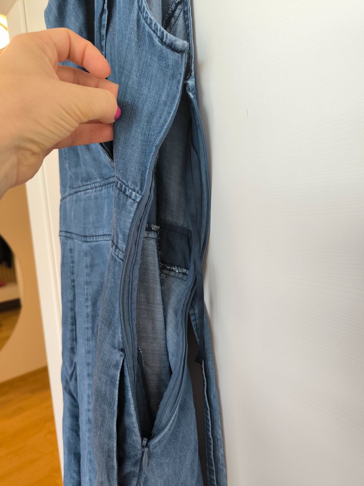 Minimálne nosené, žiadne poškodenia, na boku sú vrecká, zips na boku.