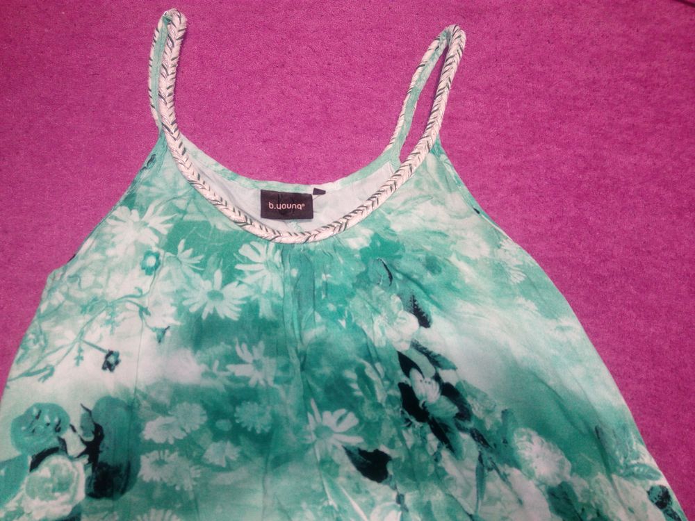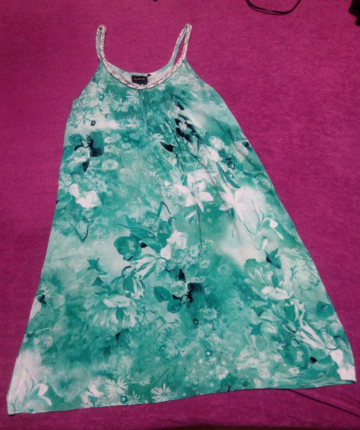 Ľahké šaty z kvalitnej bavlny. Chýba visačka, ale určite je to bavlna, možno trochu s primesou viskózy. Dl. 80 cm, šírka cez prsia 50x2 cm, pas 46x2 cm. boky 52x2 cm. okolo sodu 59x2 cm. Šaty sú...