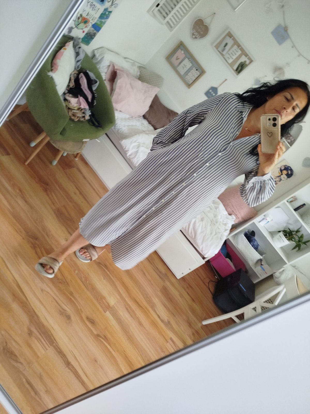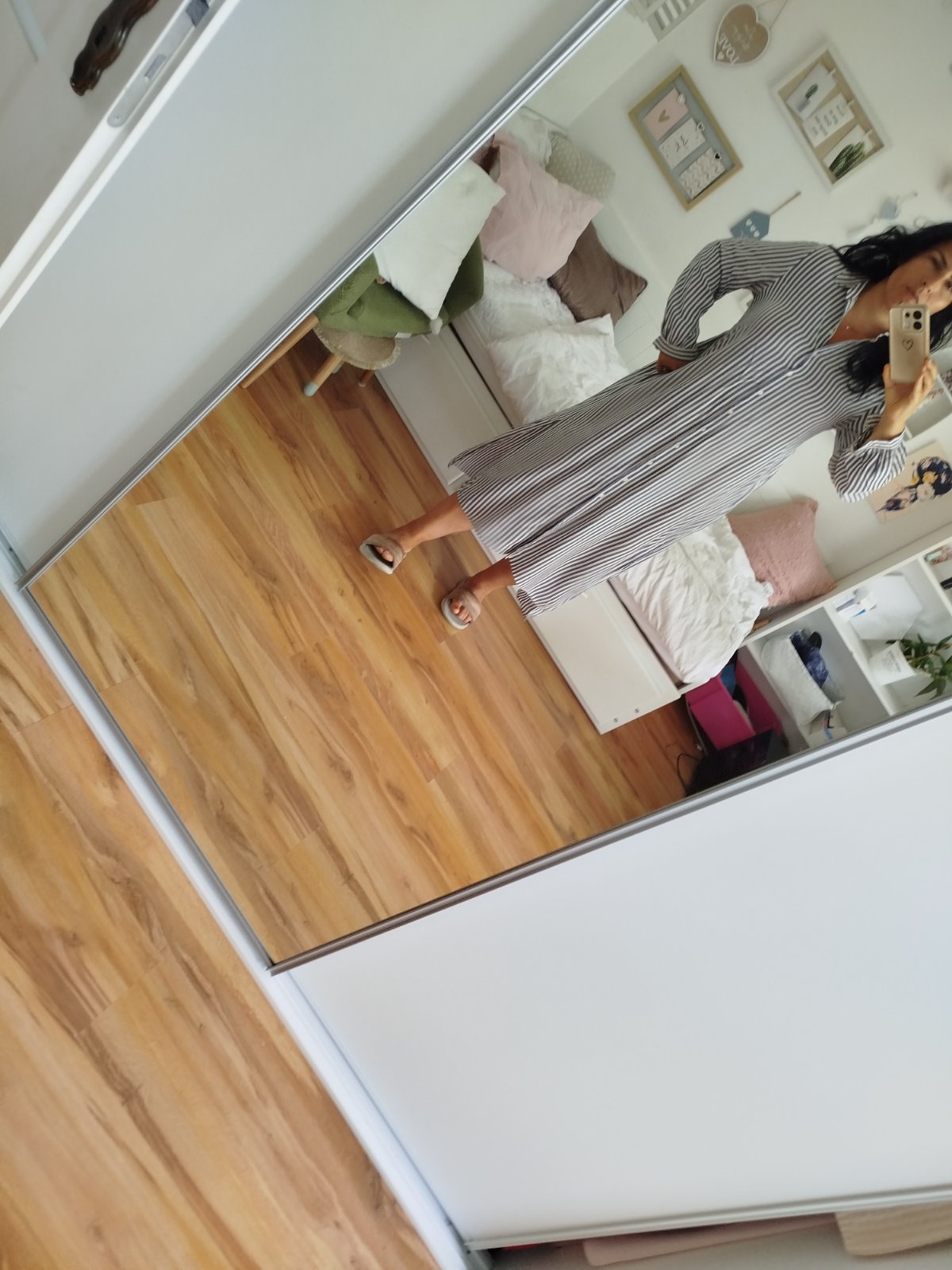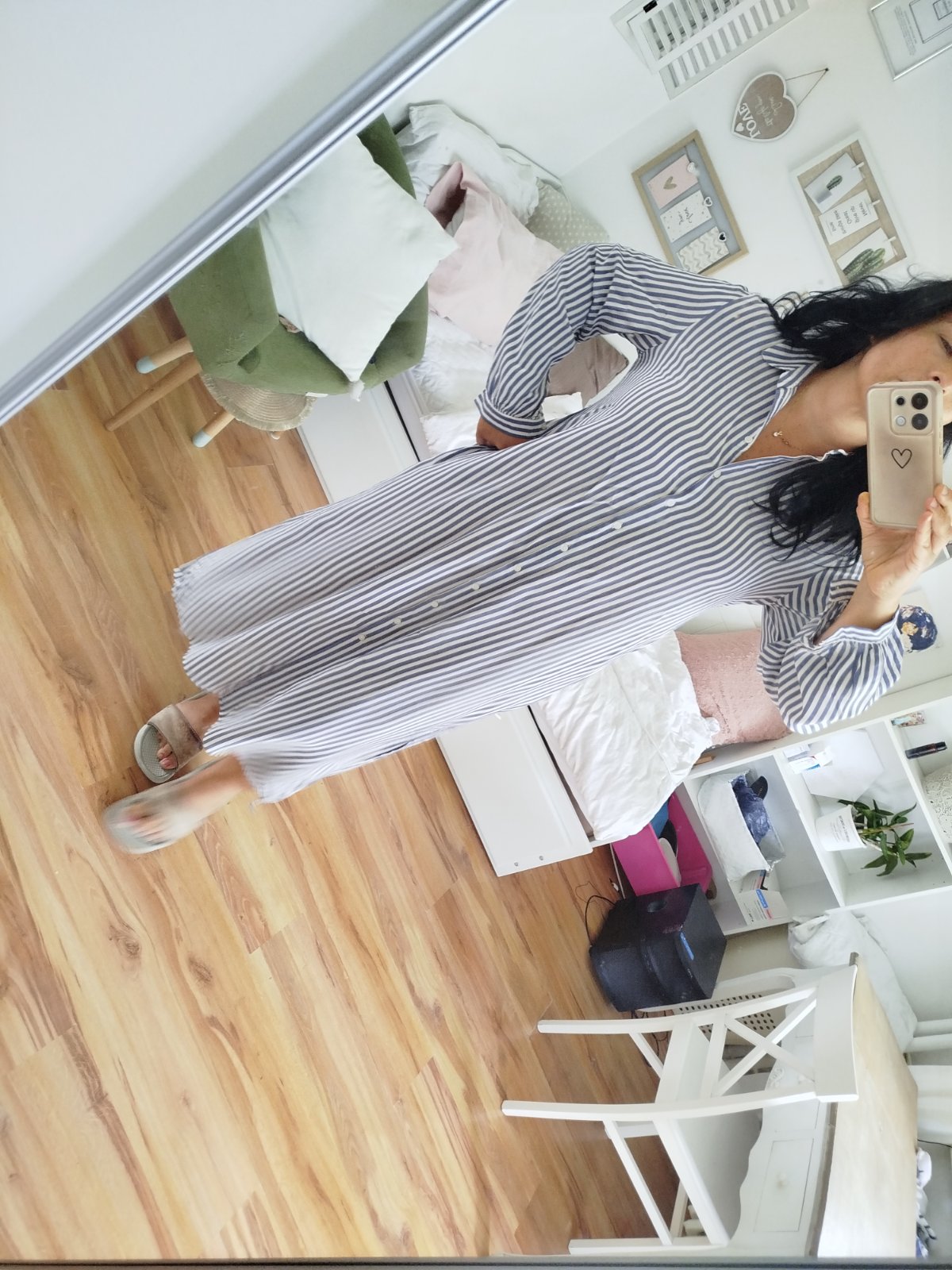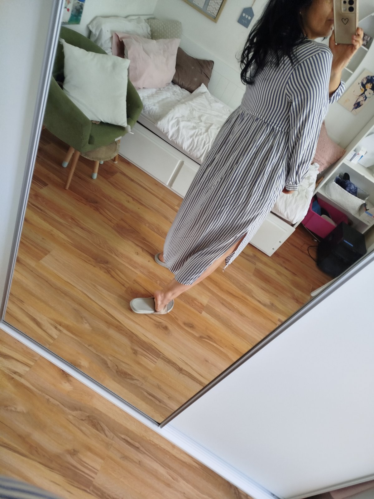 Ľahké vzdušné padave letné šaty pohodlné po boku razporky a vrecká ja som.ich nosila na plavky príjemný materiál dĺžka 124/130cm vzadu šírka pod pazuchami 59x2cm.malo nosen na jednej strane sa rázporok para nič hrozne.visacky zvnútra odrihnute