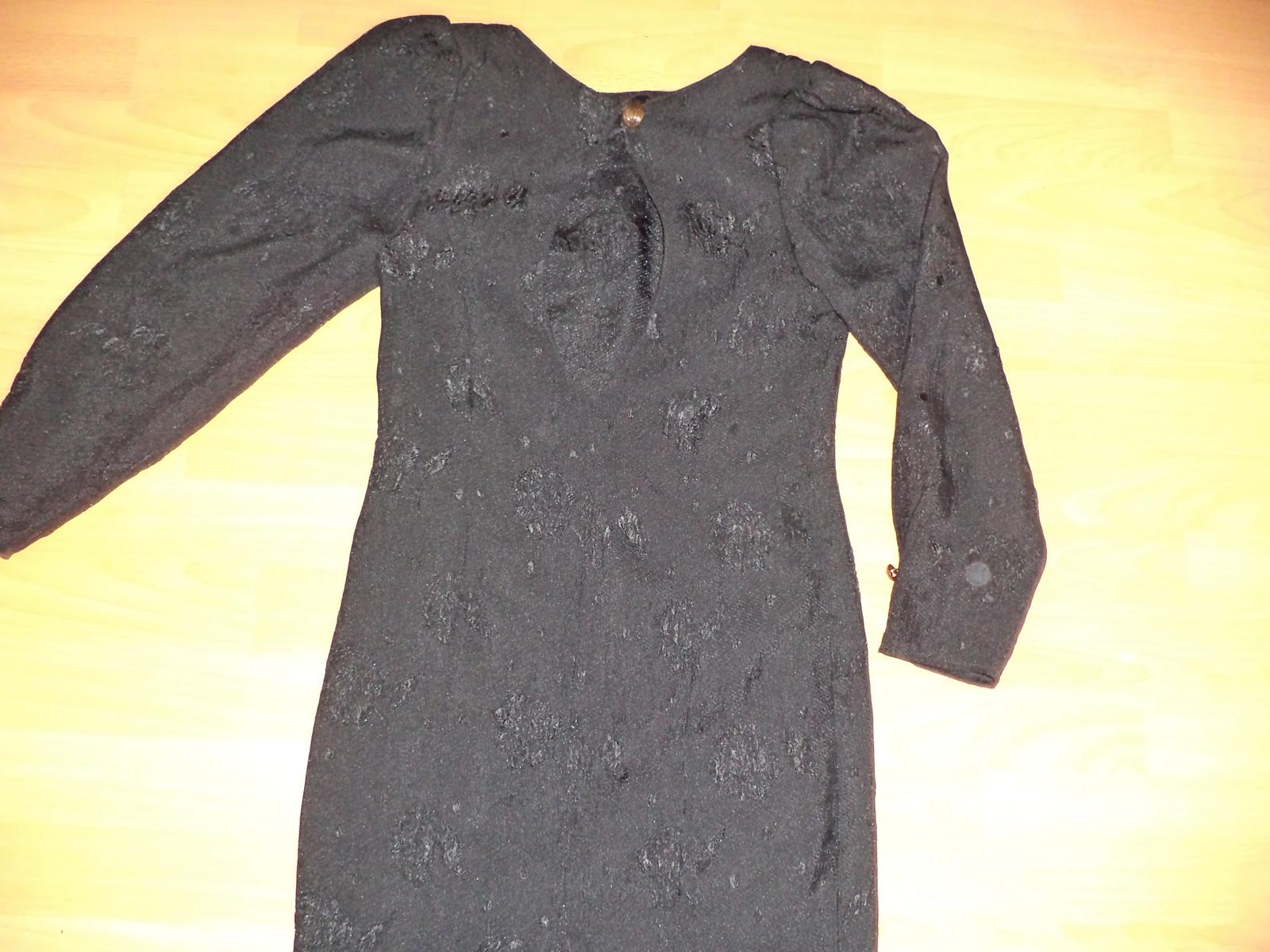Predam pekne nove čierne elegantne šatičky s 3/4 rukavom , velmi pekny material v ktorom su vtlačane plasticke kvety , vzadu hlbši slzičkovy vystrih a u spodu maly rozparok na boku zips, celkova dlžka 86cm , dlžka rukava 58cm, obvod hrude 82cm obvod bokou 86cm,kuknite aj dalšie moje inzeraty