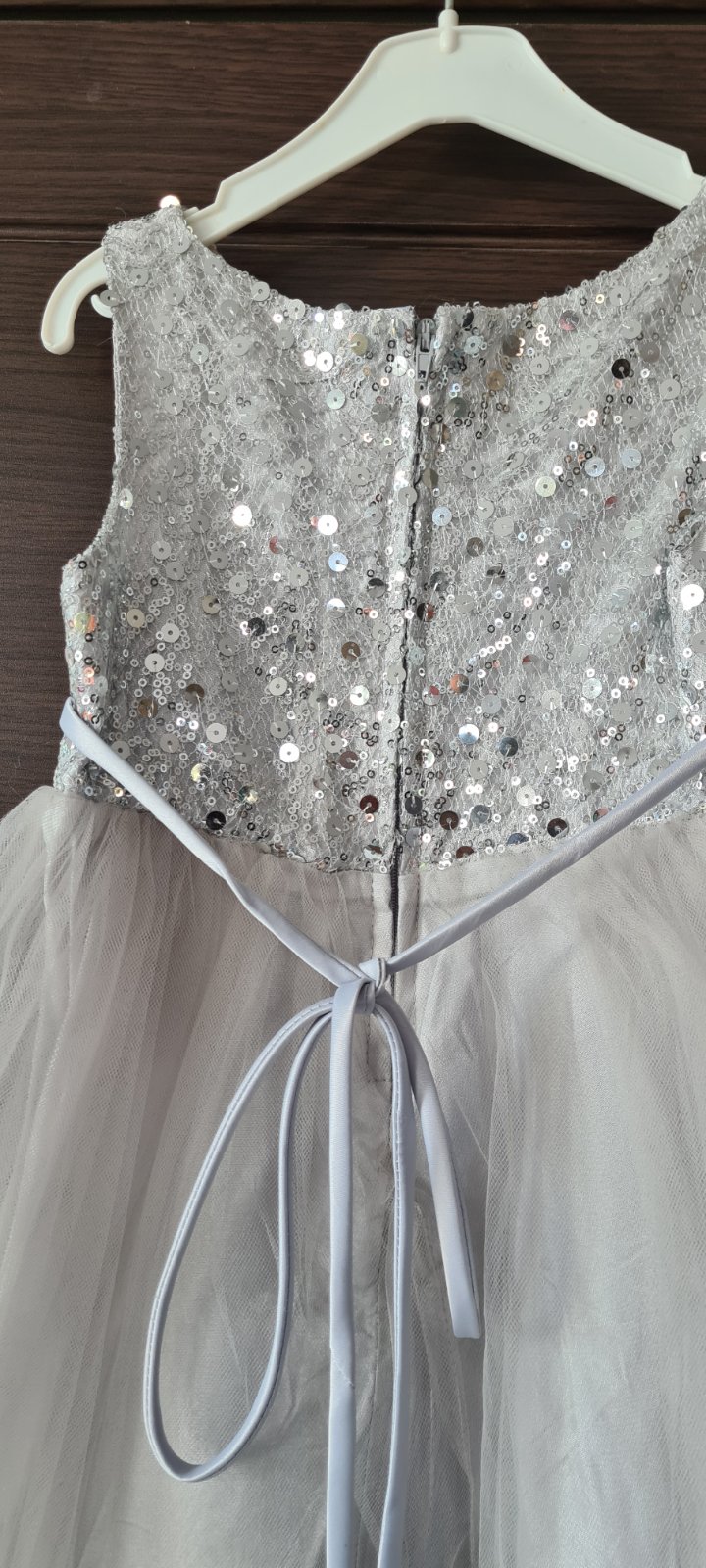 Krásne šaty pre dievčatko. Oblečené len na svadbe. Velkost na 3-4roky. Bohatá suknicka, viažu sa vzadu.