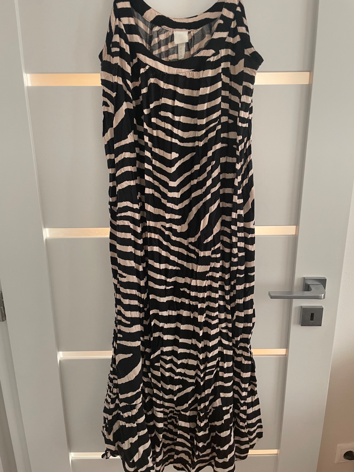 Na predaj bolne letne saty, cierna- bezova. Pisana velkost 36- ale su volne tak na L/xL, dlzka po lytka.Prsia a pas cca 115 cm. Top stav.