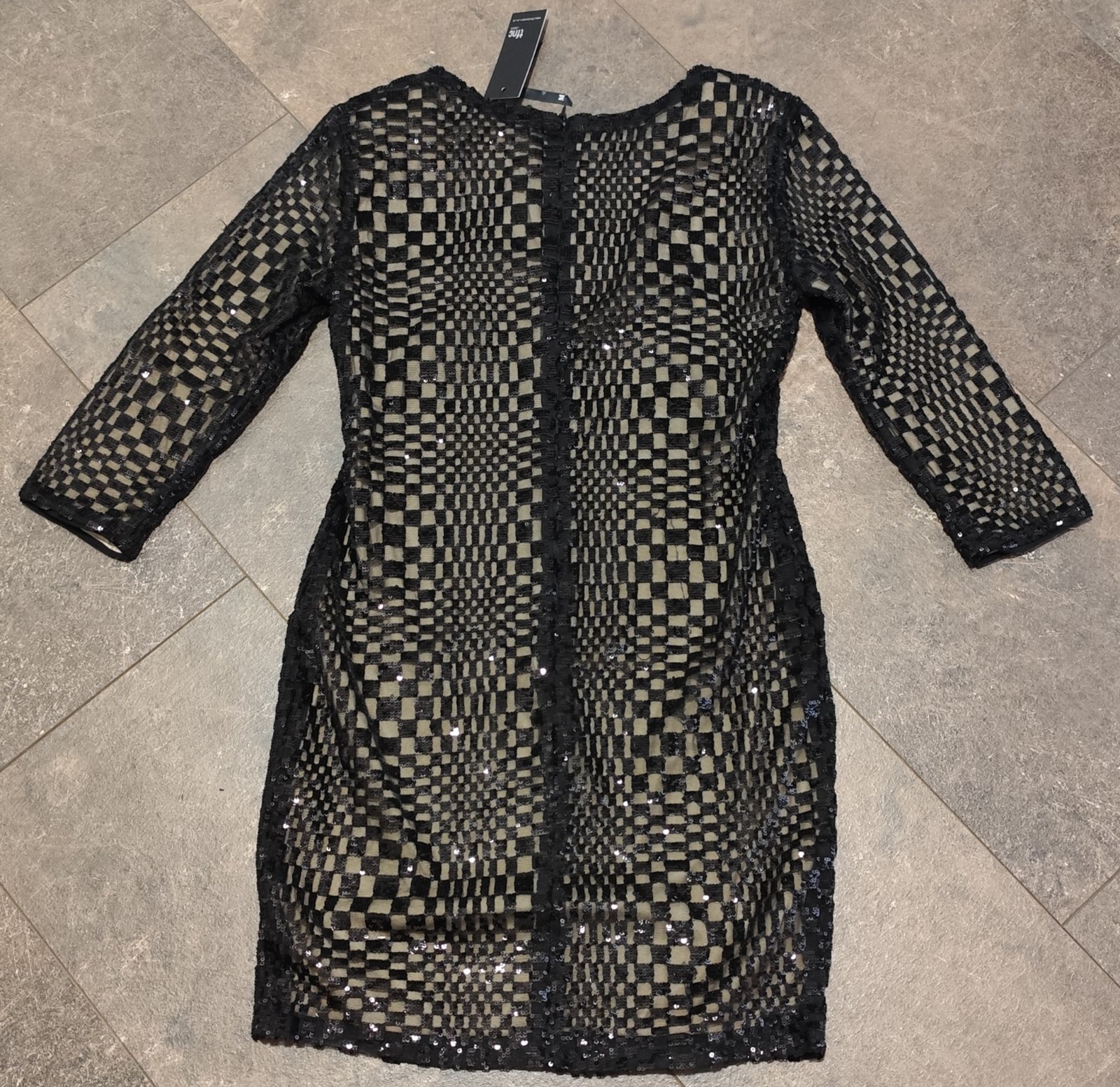 Predám krásne nové elastické šaty. Zvonku čierne flitrové,vo vnútri podšité béžovou látkou, vhodné na Silvestra.