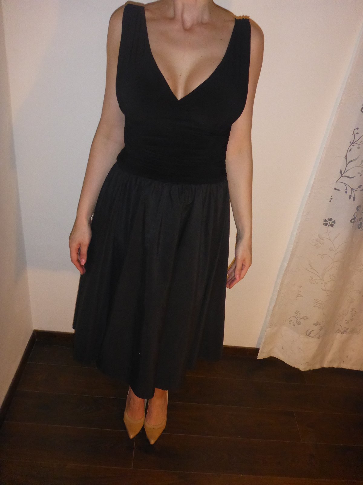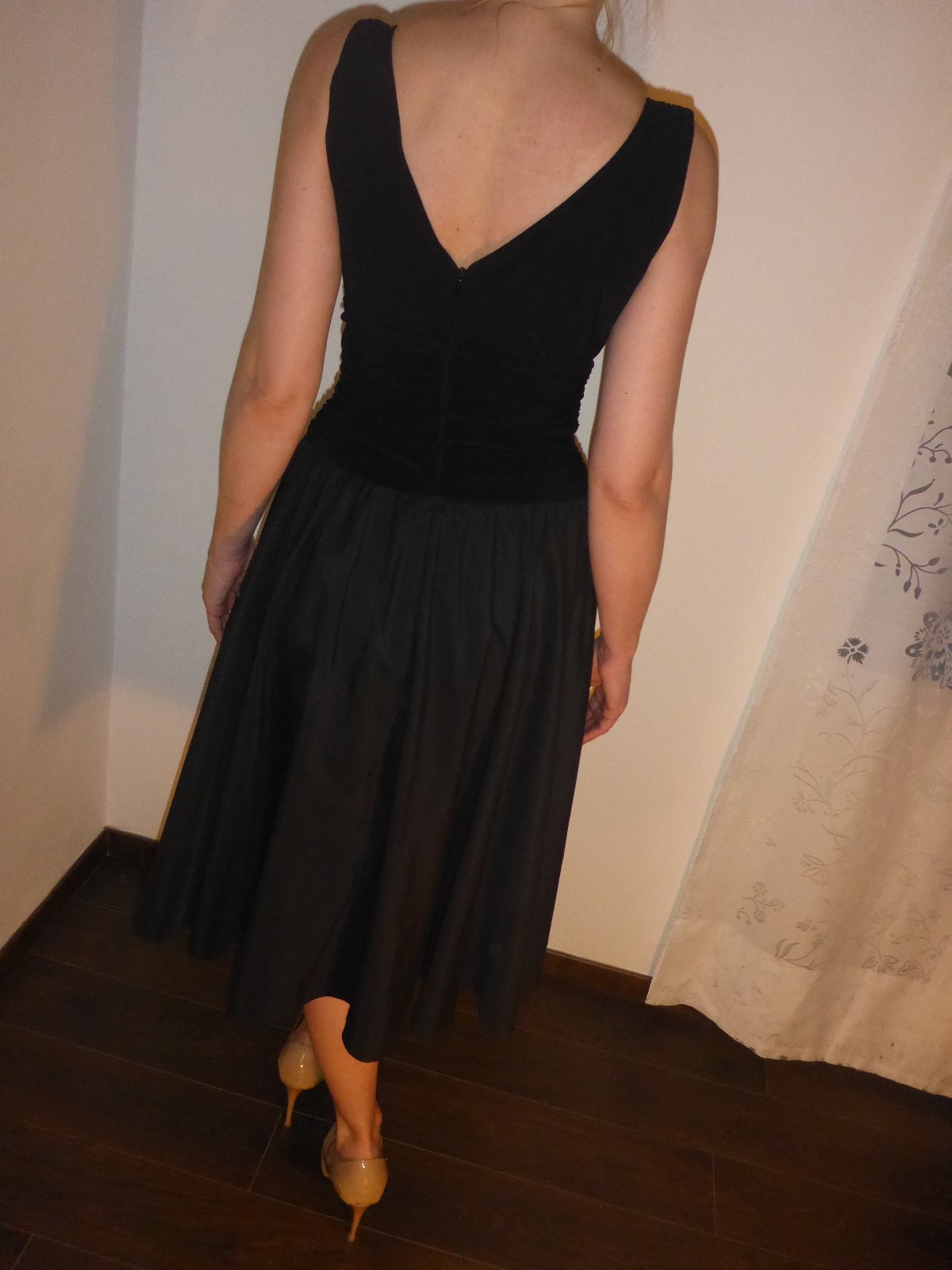 Dámske čierne elegantné luxusné šaty. Sukňa pekne drží svoj napufňaný tvar. Hodia sa na bežné nosenie i na slávnostné príležitosti. Kúpené v USA z Dillard's. Značka Jessica Howard. Veľkosť M 38. Pôvodná cena v prepočte cca 180EUR. Použité raz. Foto fotene na vyske 178cm.