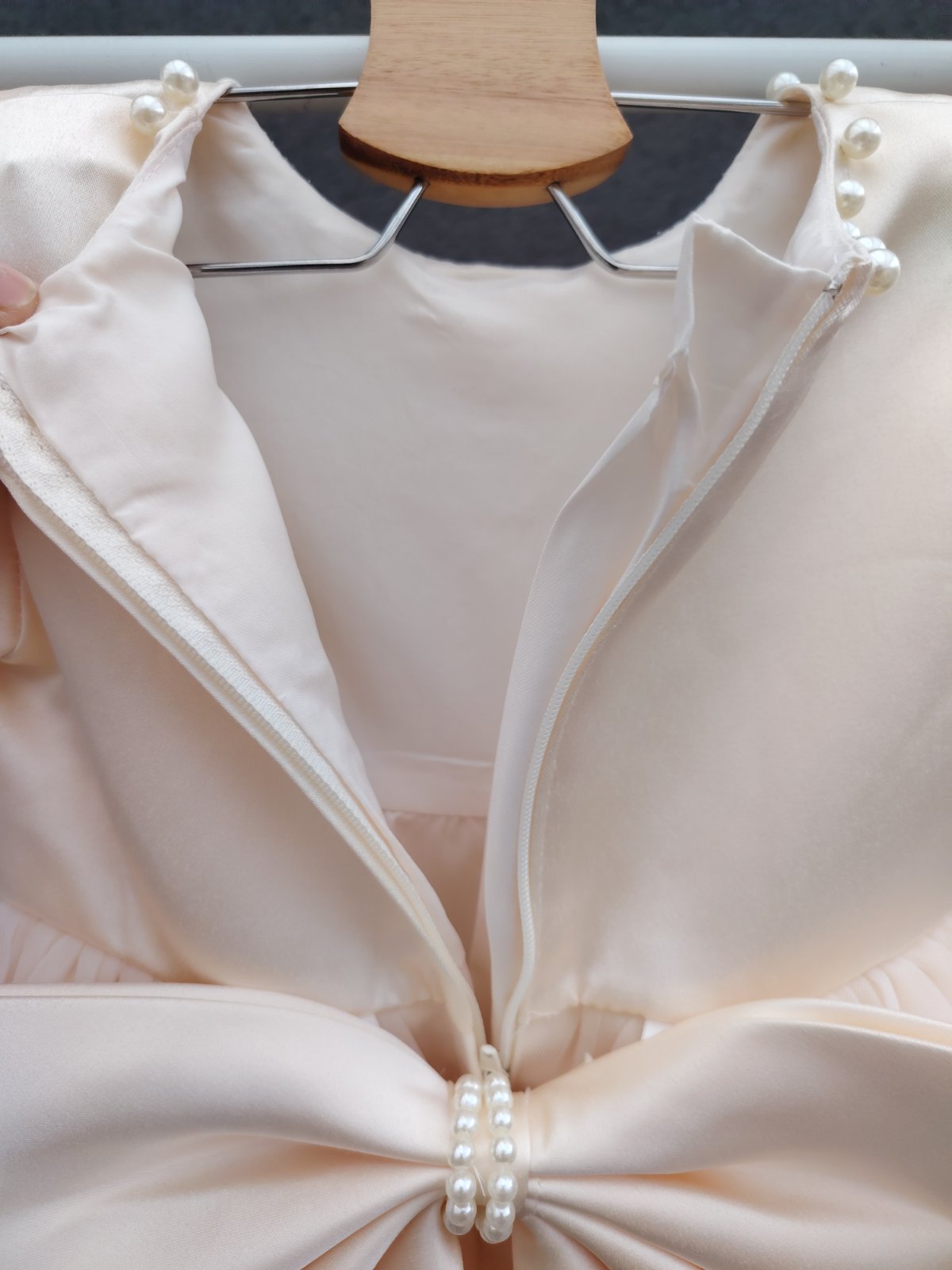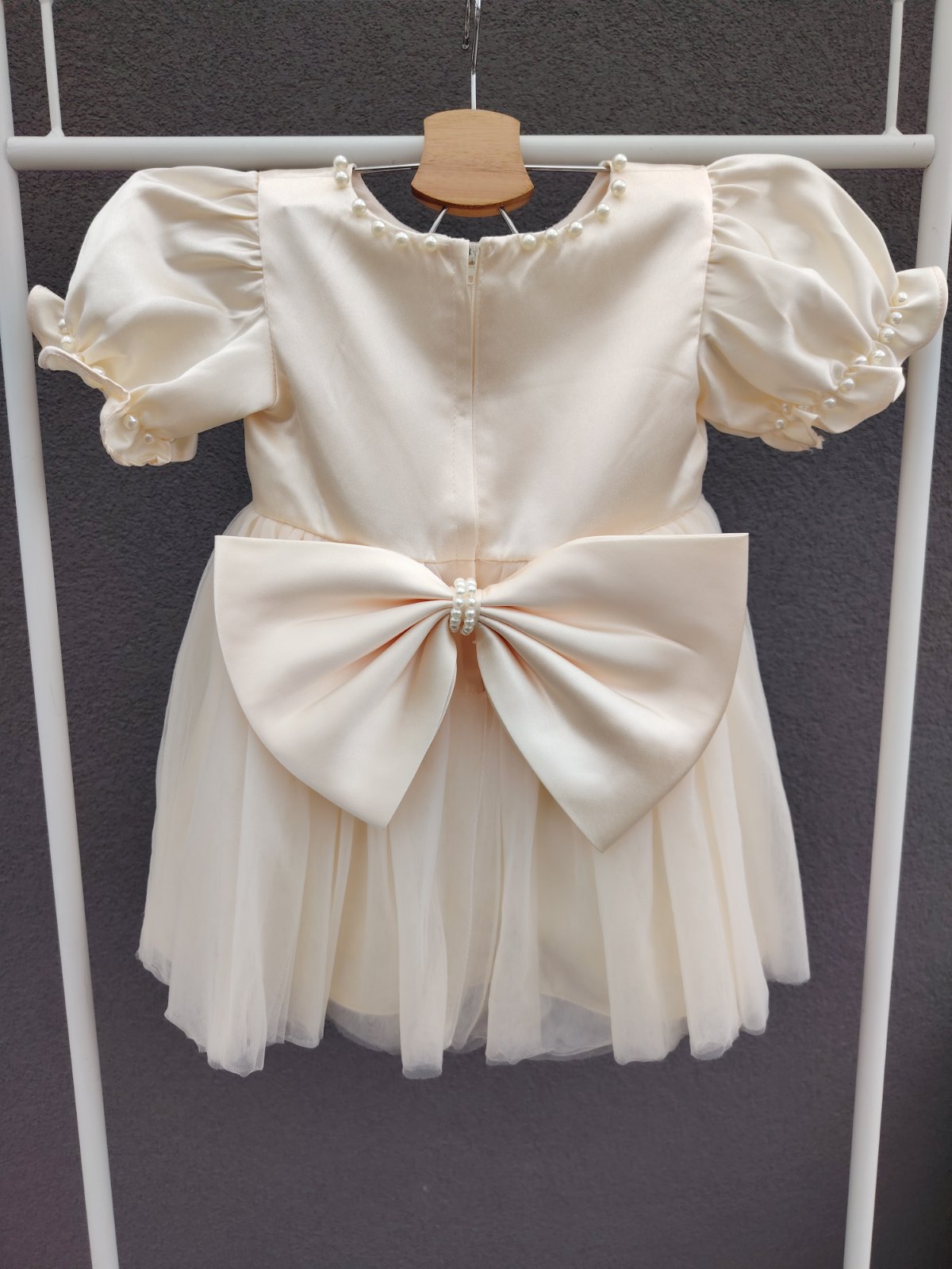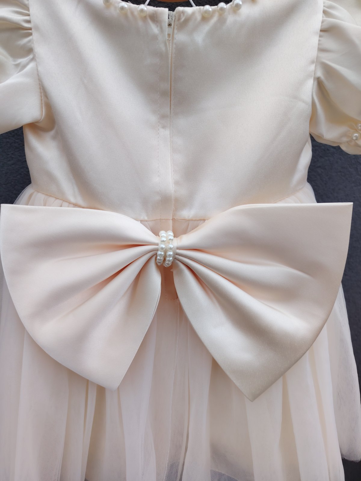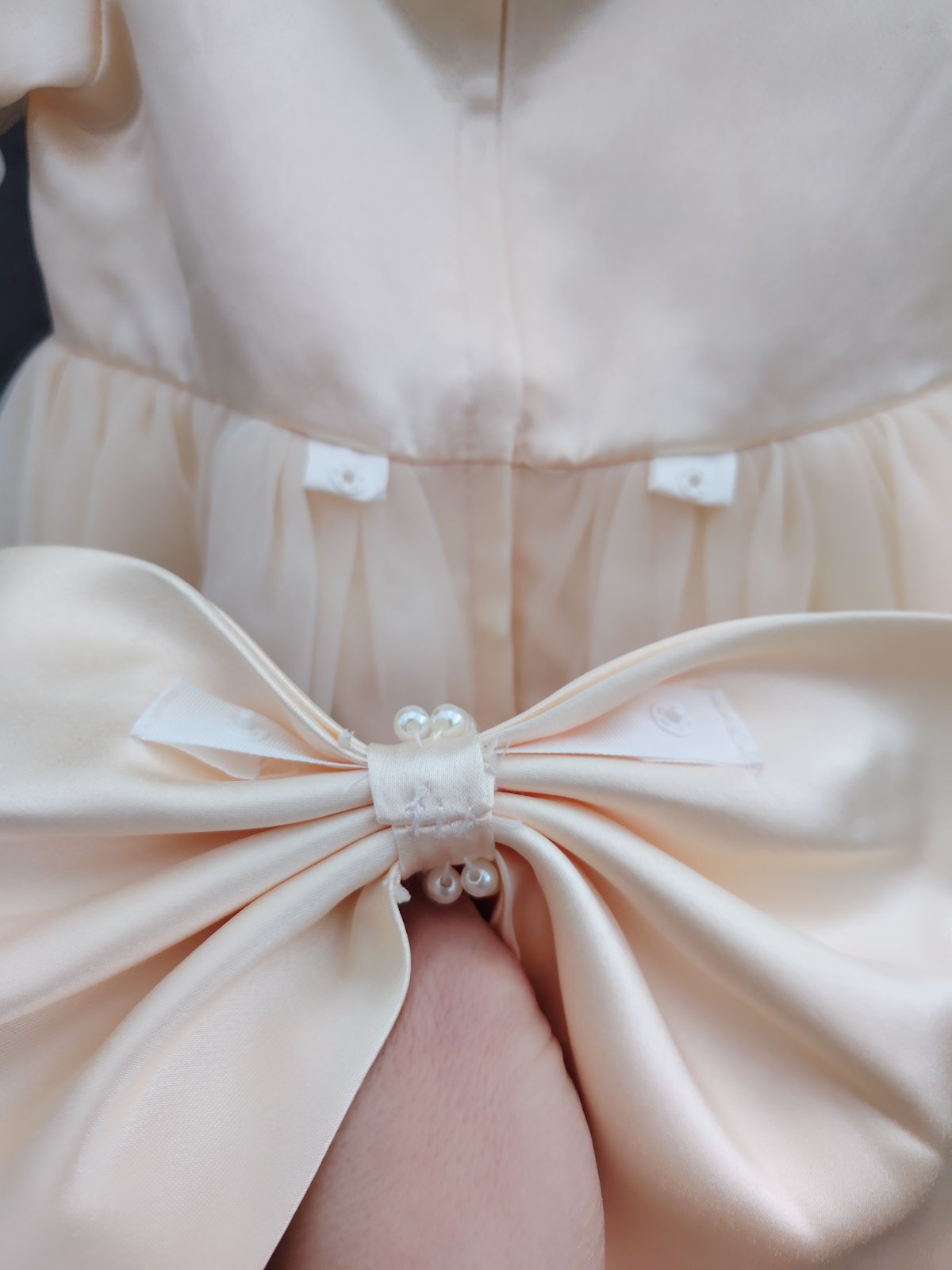 - šaty maju vzadu na chrbáte odopínateľnú ozdobnú väčšiu mašľu s bielymi guličkami
