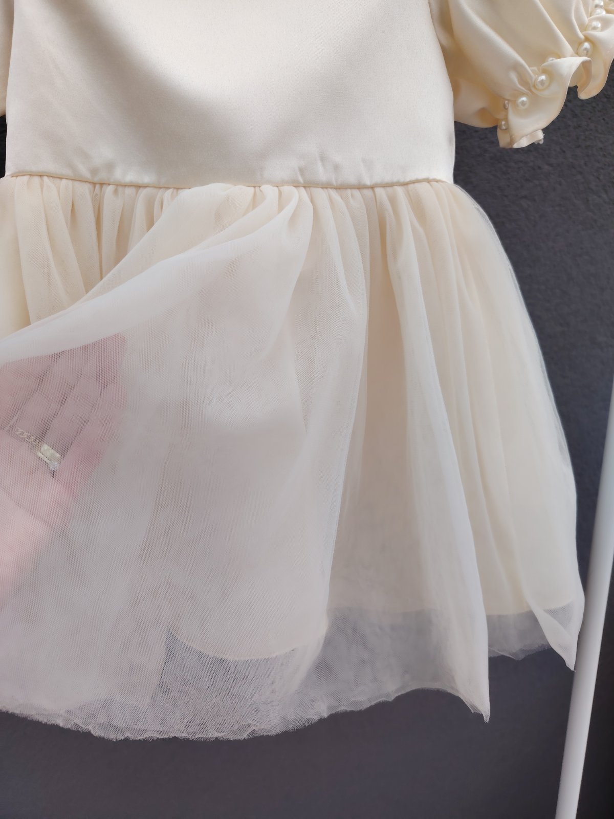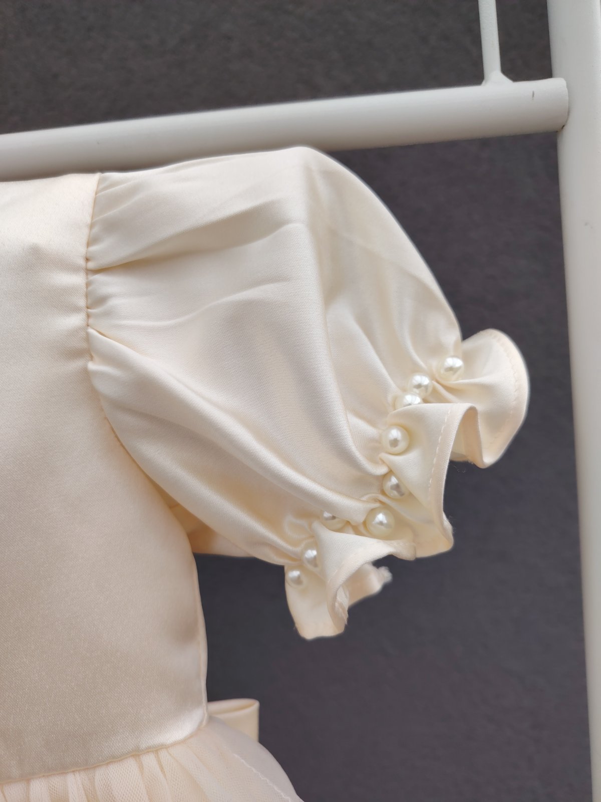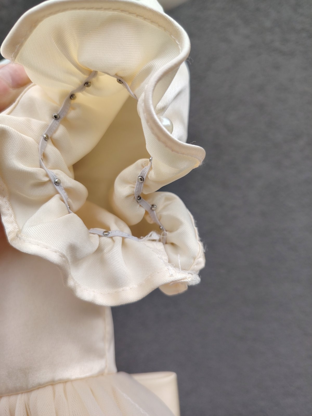 - šaty maju vzadu na chrbáte odopínateľnú ozdobnú väčšiu mašľu s bielymi guličkami