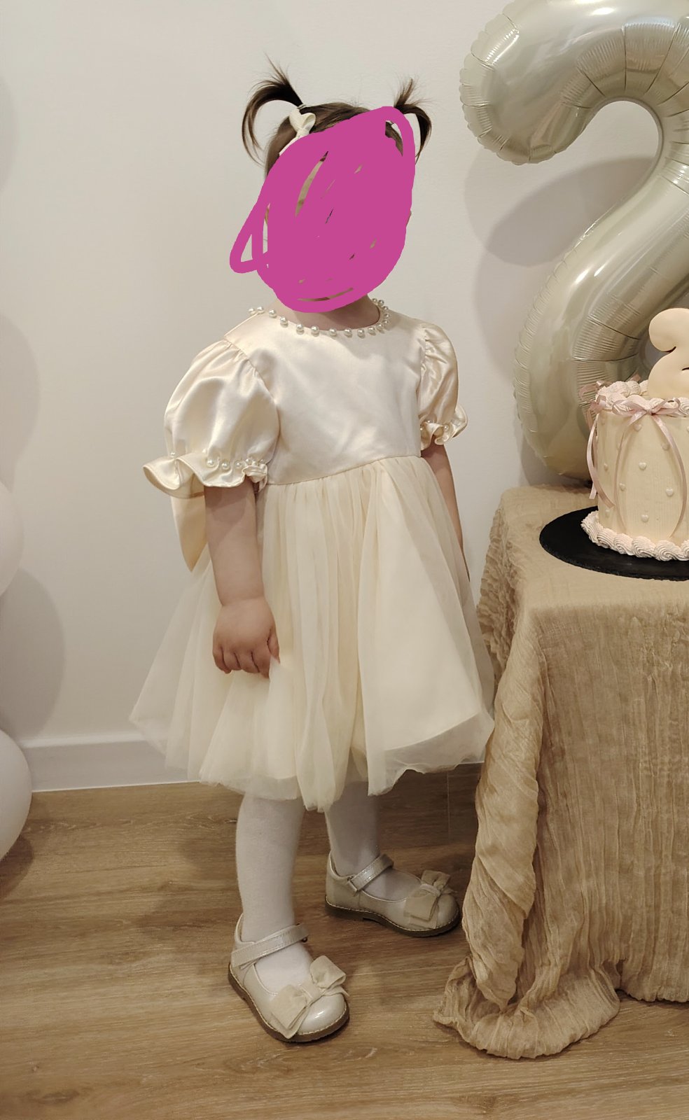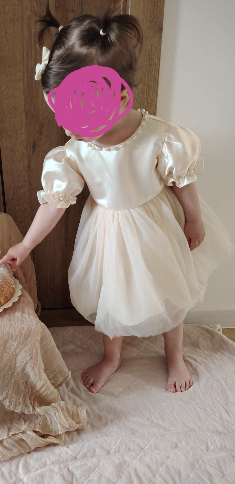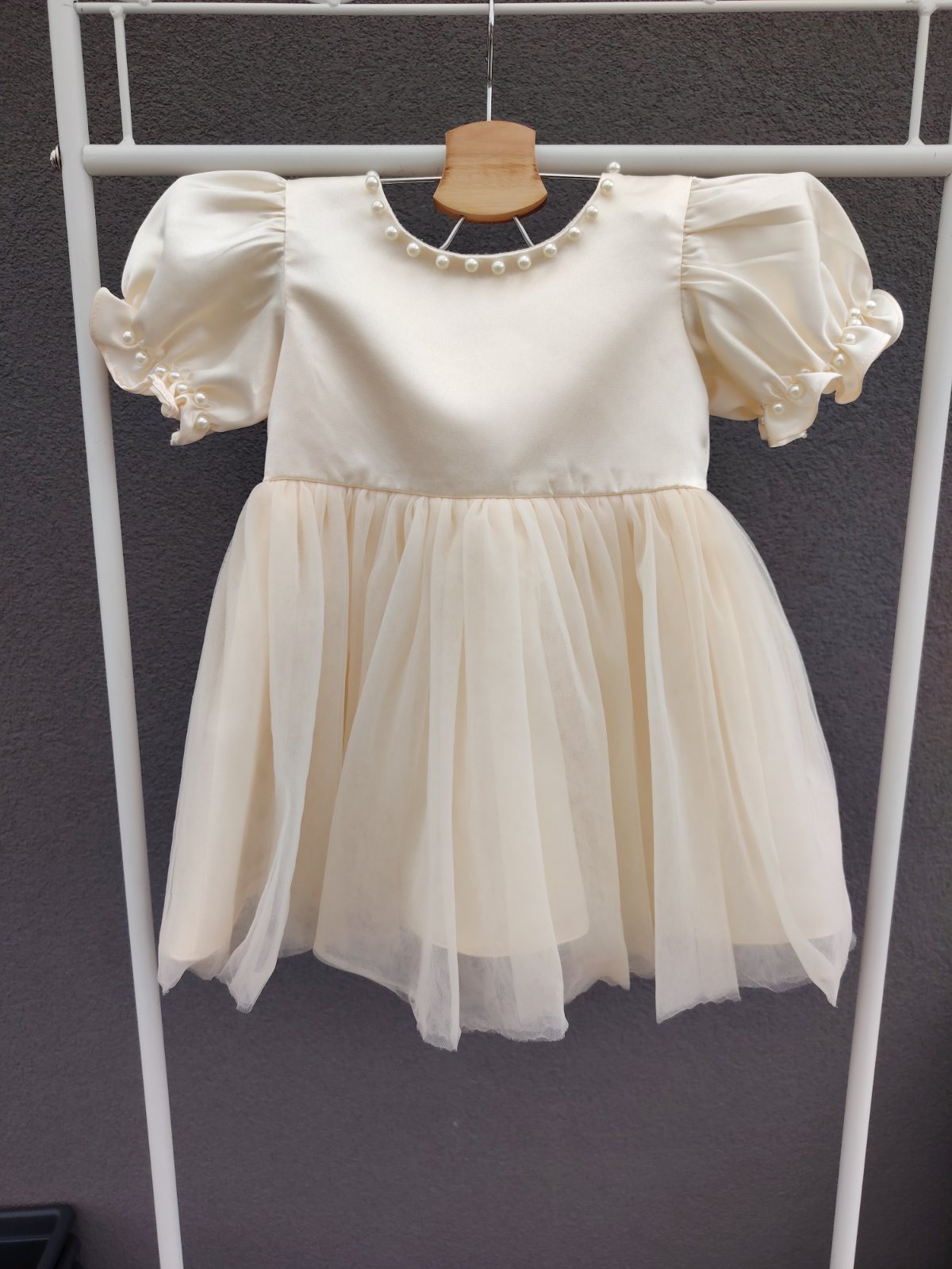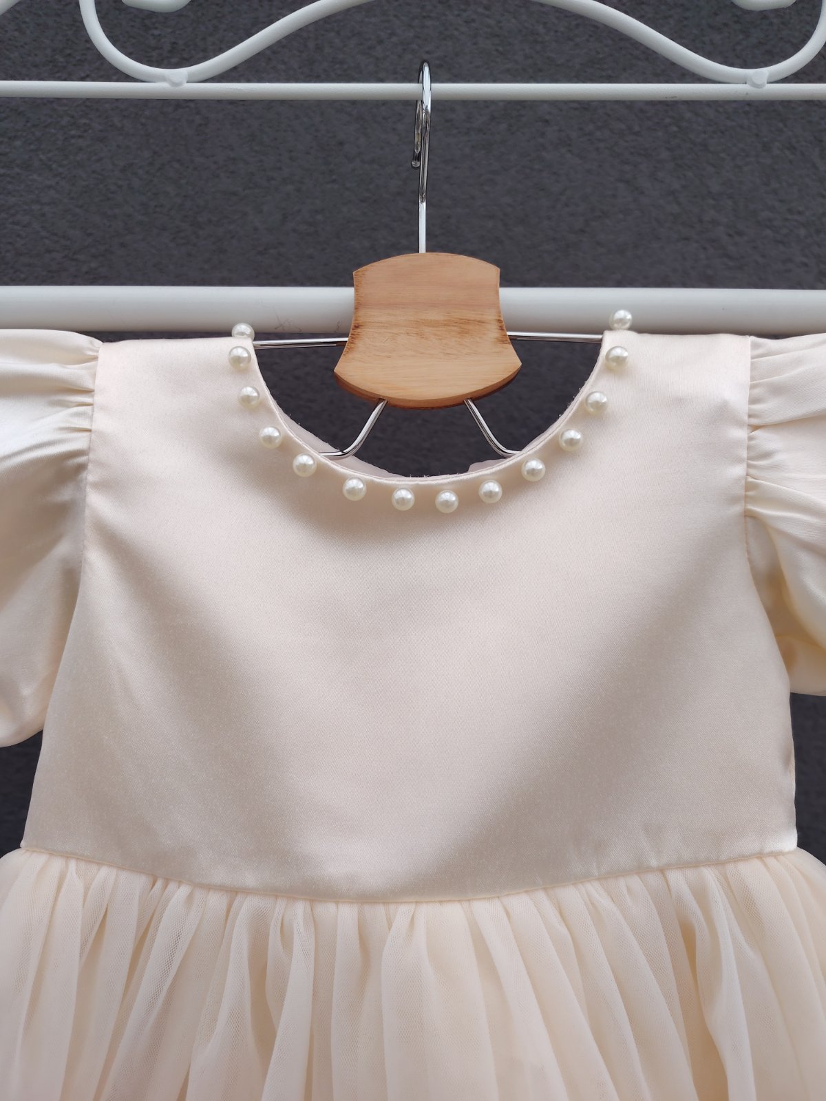 - šaty maju vzadu na chrbáte odopínateľnú ozdobnú väčšiu mašľu s bielymi guličkami