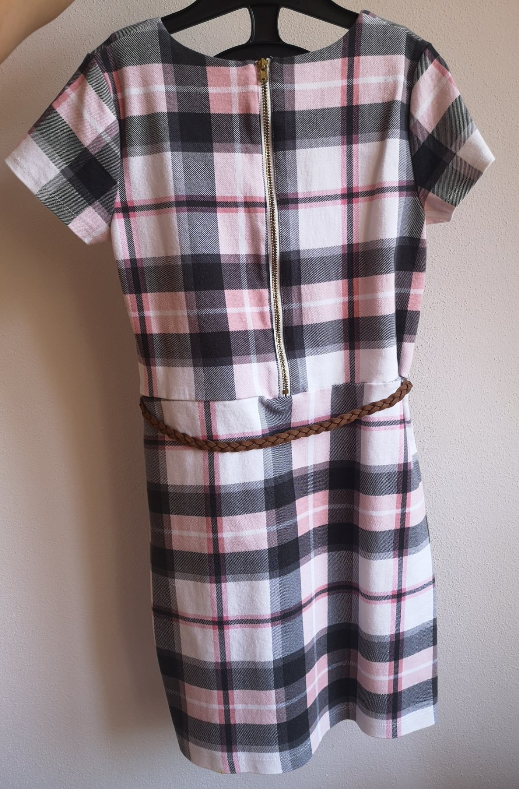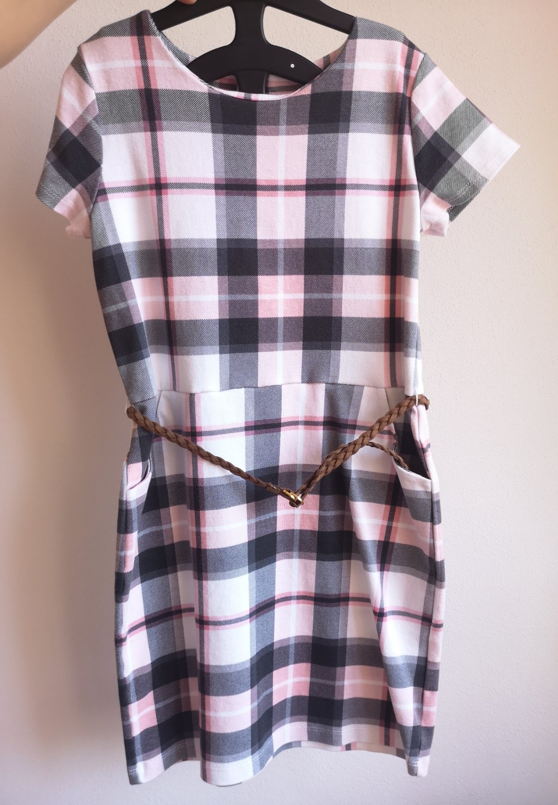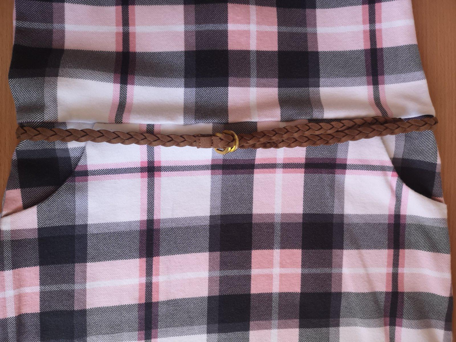 Kárované šaty s vreckami a opaskom
