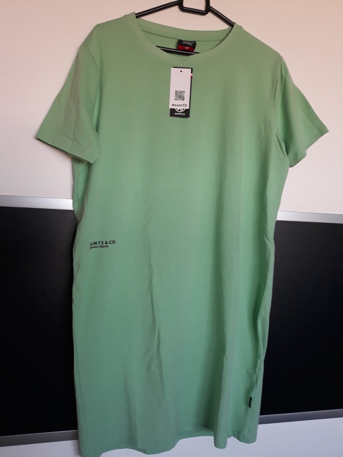 Predám nové dámske bledučkozelené šaty SAM73 s vreckami, krátky rukáv..95% bavlna, 5% elastan..veľkosť písaná XS,ale sadne až do M..prsia 54cm..dĺžka 90cm..cena 10e + poštovné.