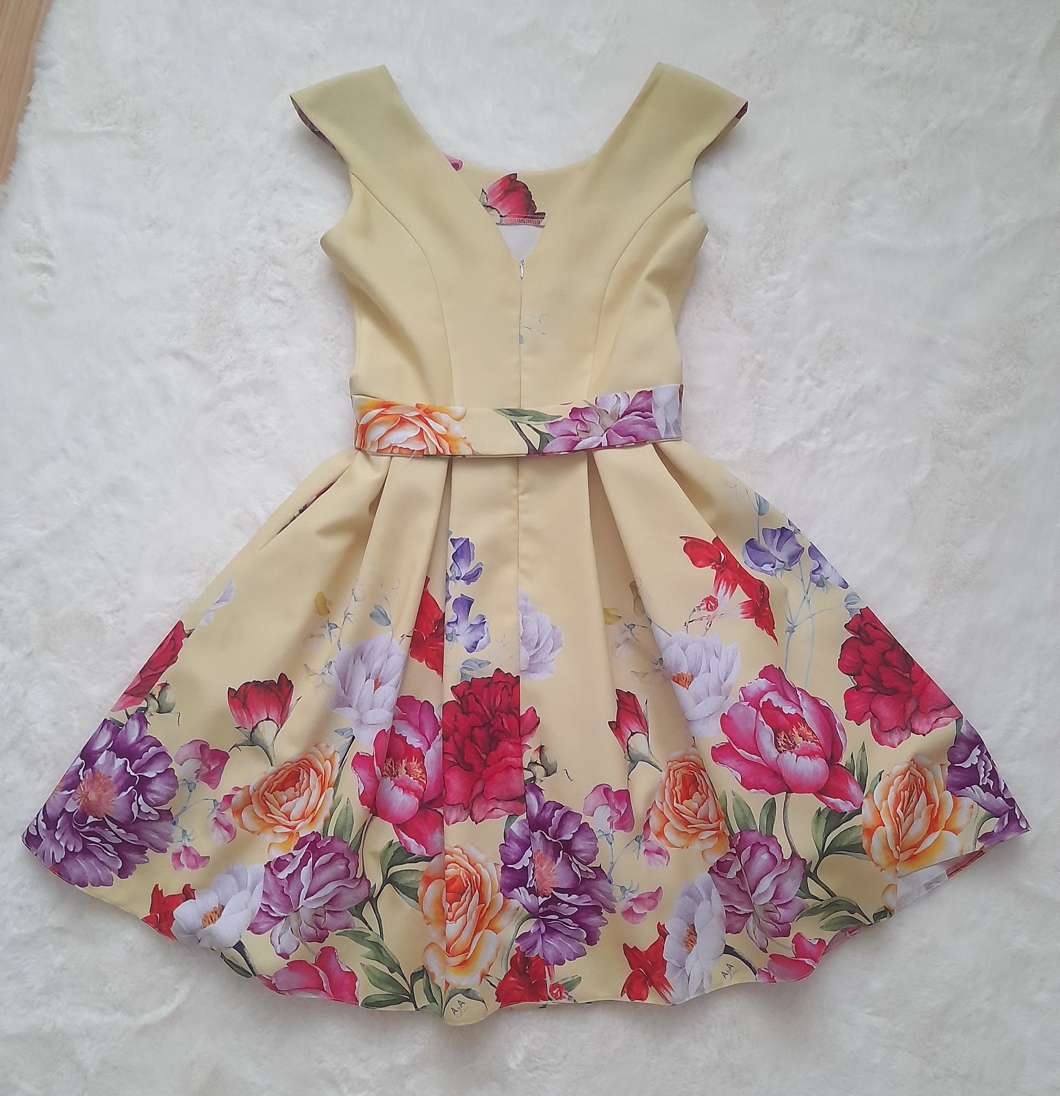 top stav, emne elastické, spodná časť podšitá, jedna vrstva tylu, dĺžka od pása dole 56cm, pás v kľude 34x2cm, hrudník do 88cm