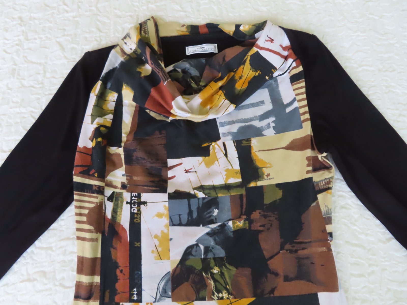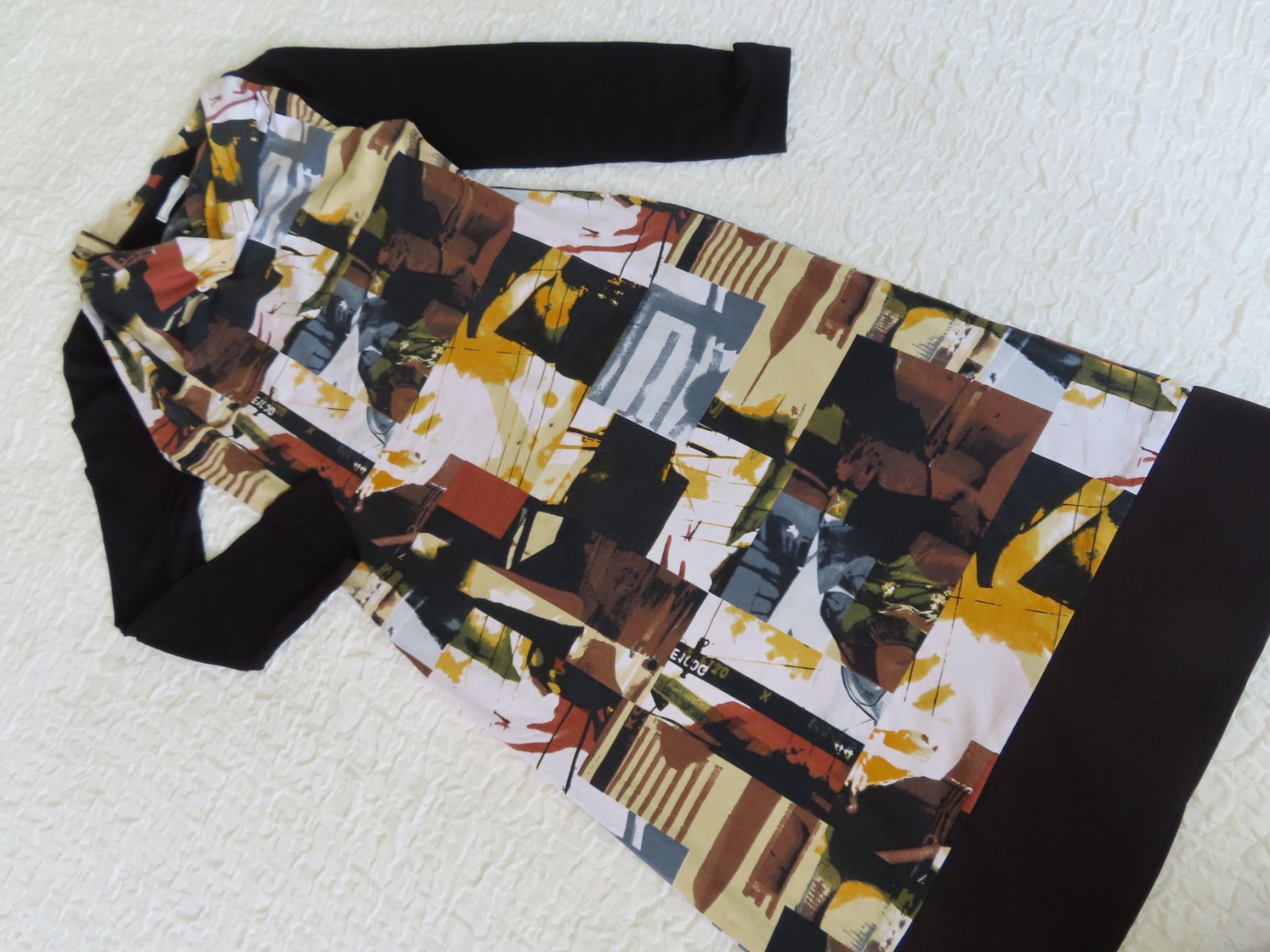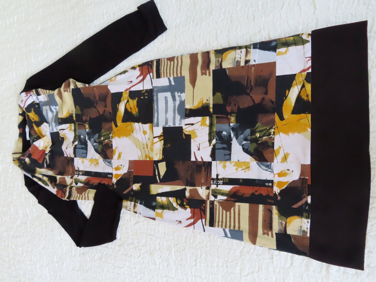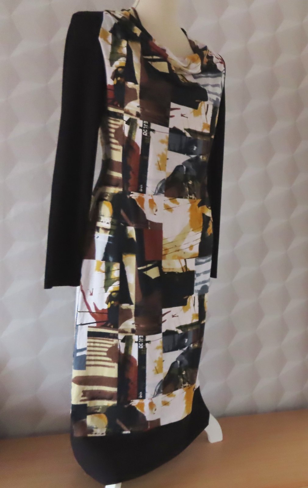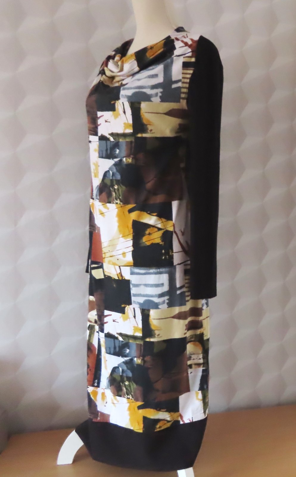 Šaty majú peknú potlač "art vzorov" , úpletové, padavý golier .