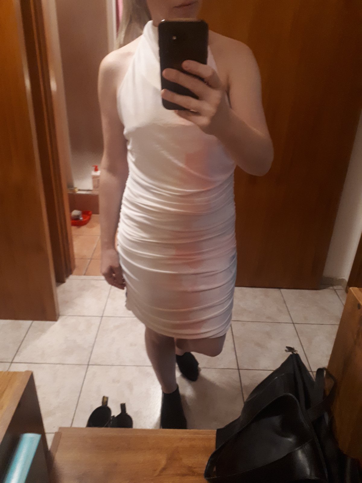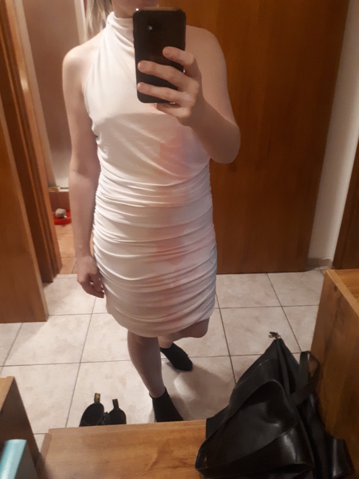 Tylove saty maju holy chrbat ,halter vystrih,uvazuju sa na velku maslu okolo krku,maju par zmolkov pri zipse vid fotku,velkost Xl,cena s obyc.postou