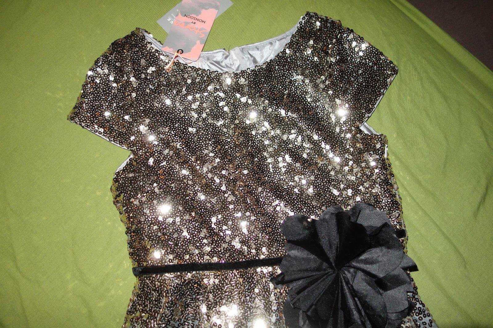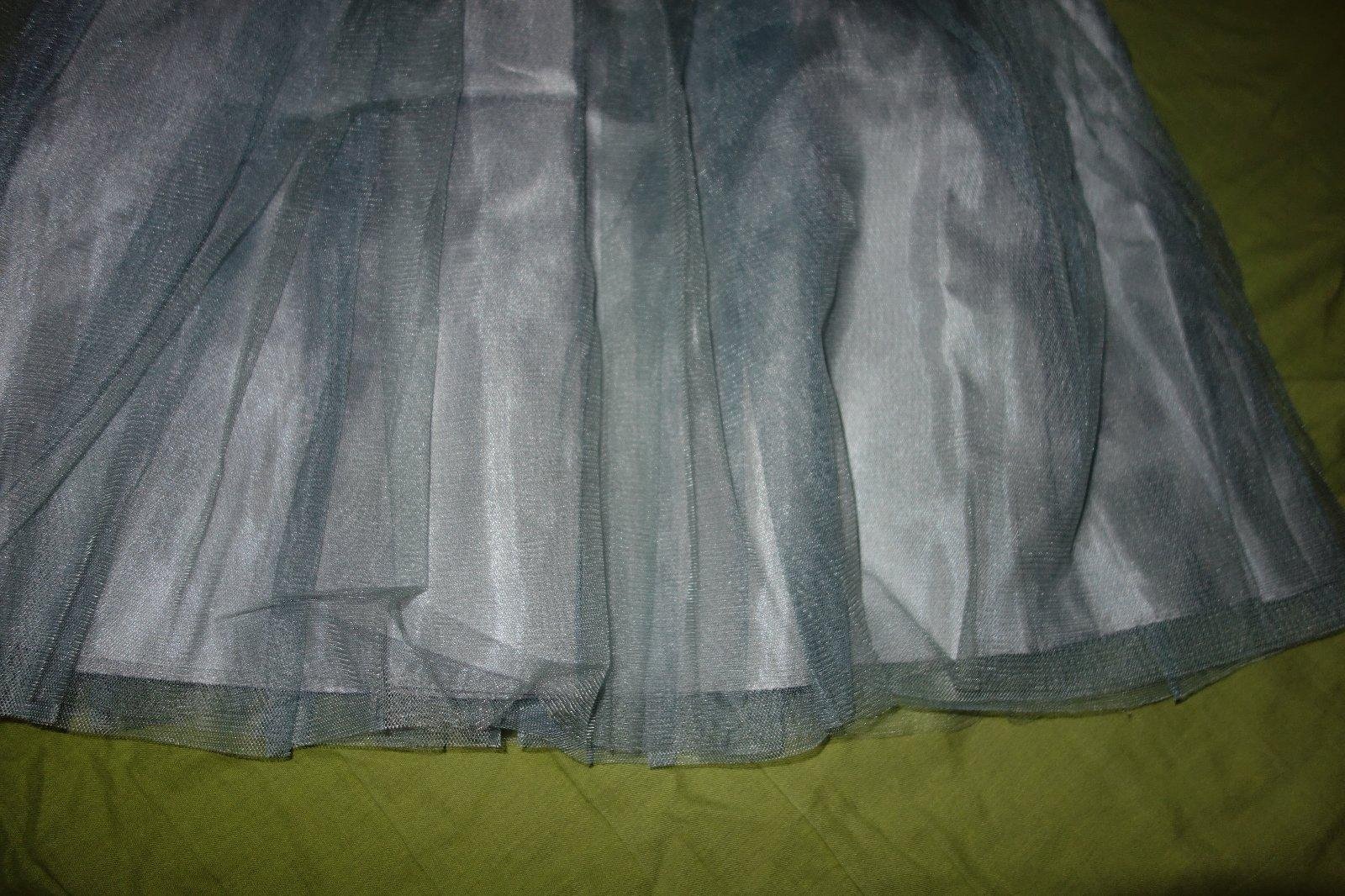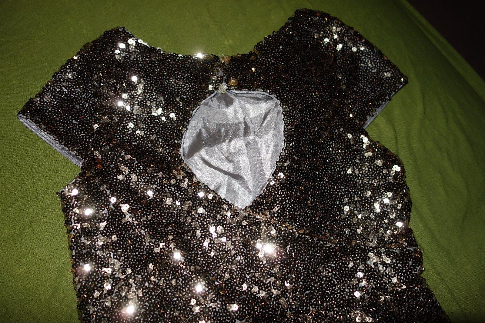 Nadherne sviatocne satocky- nove, s visackami. Vrch je cely zo zlatych flitrikov. Suknicka je svetloseda s nadychom do modra. Zboku maju zips.