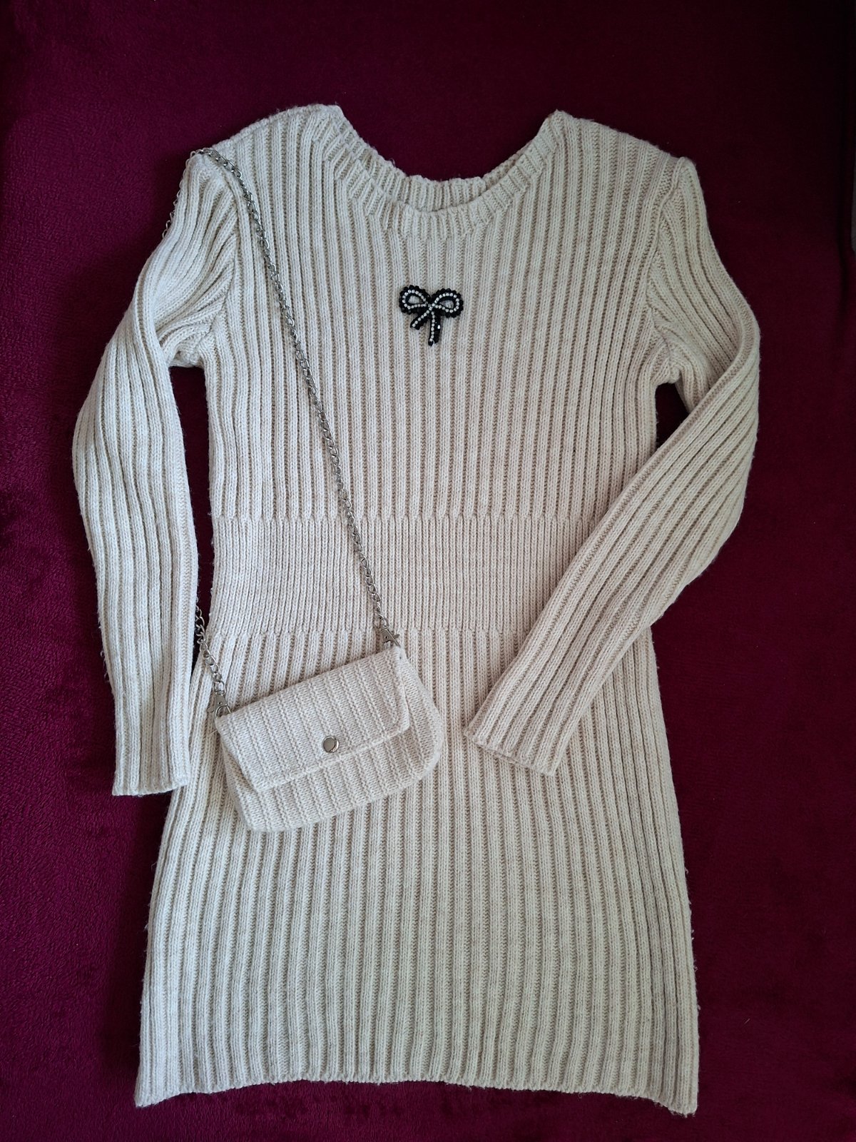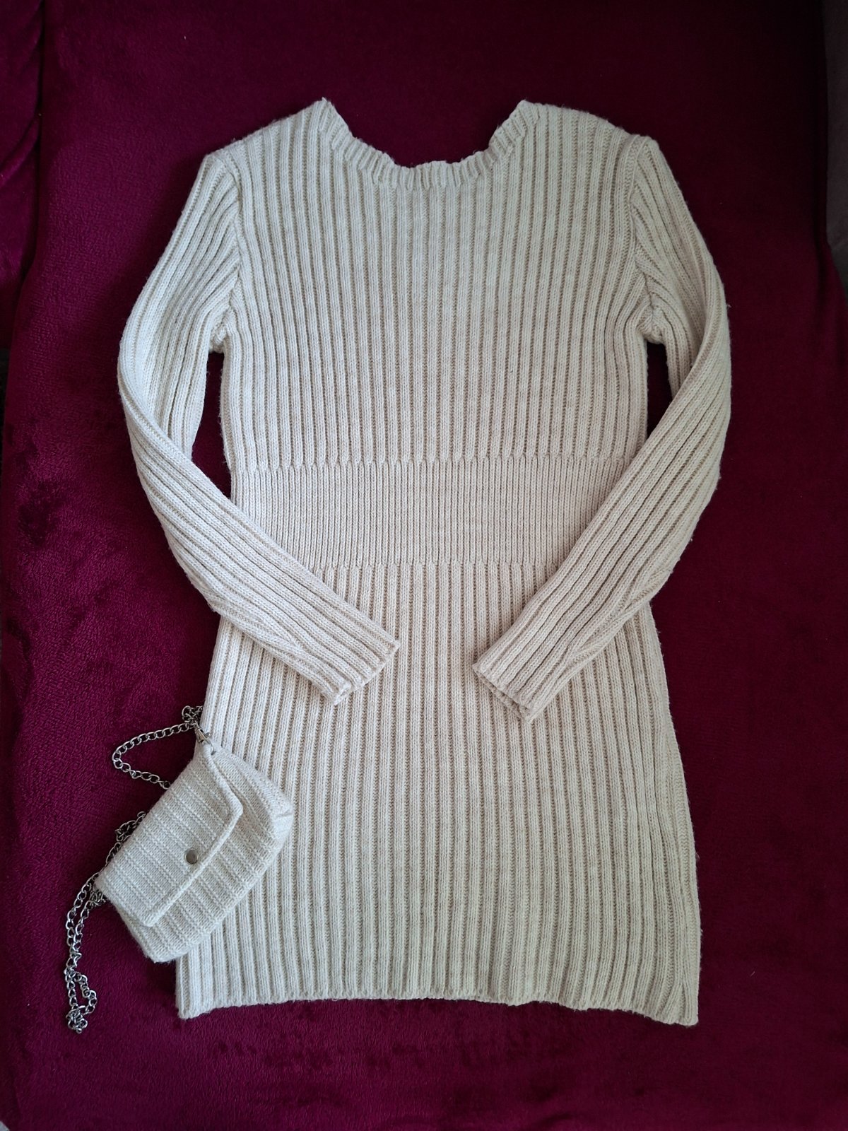 Svetrové šaty s kabelkou