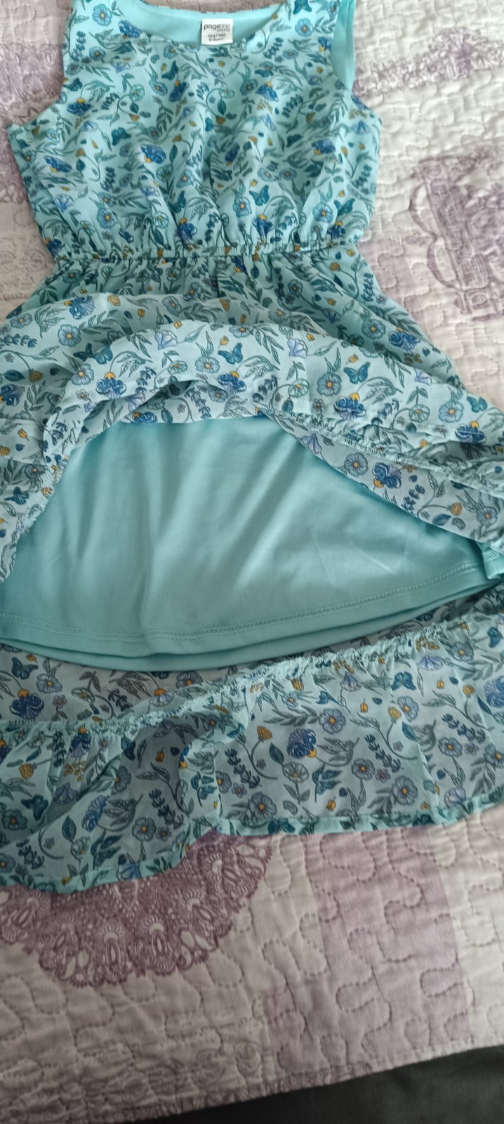 Top stav Potlač akoby pupavove "padaciky" V páse je strieborný lem...viď foto Písané 140, odporúčam už ako 134