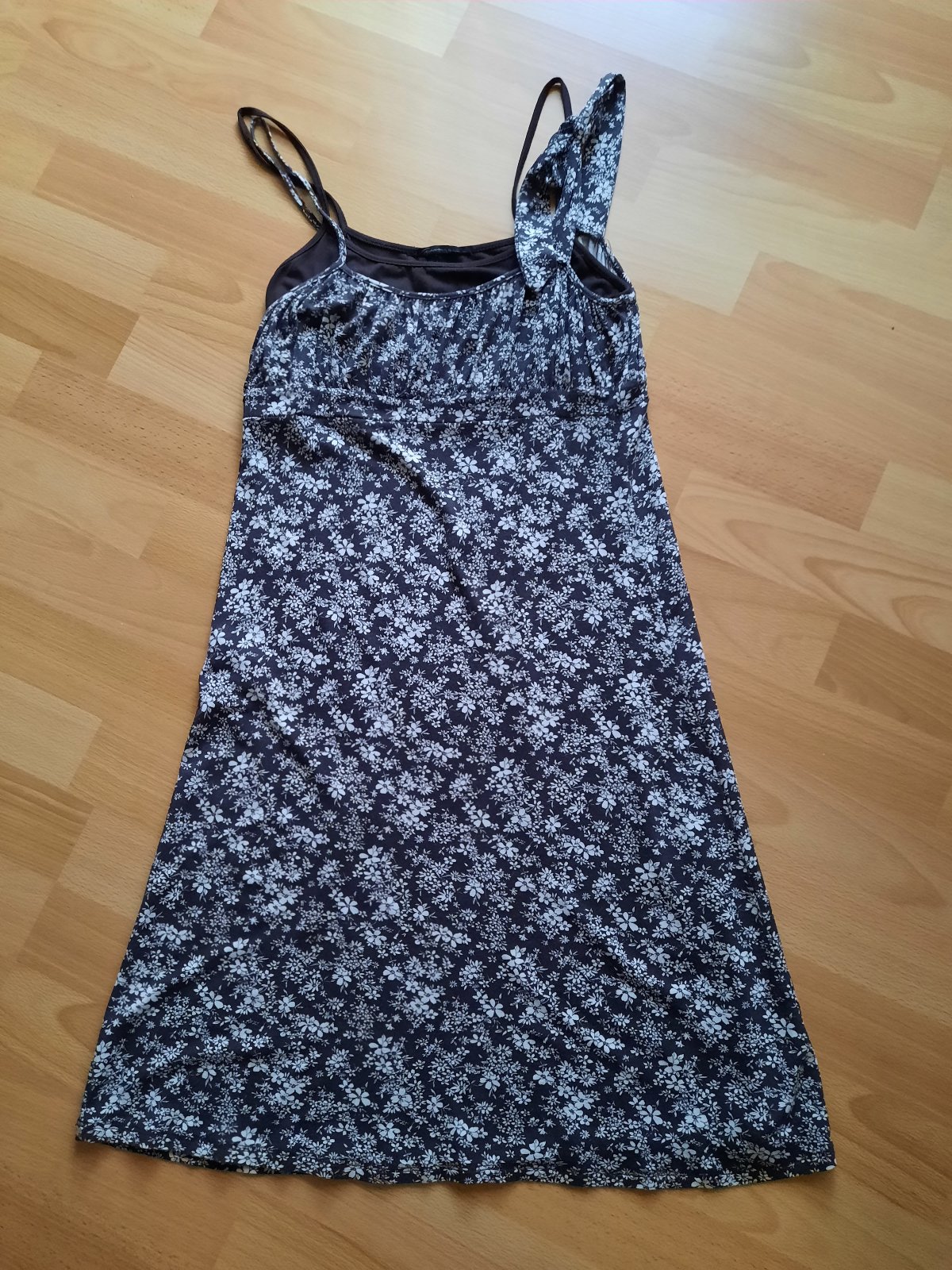Predám veľmi pekné úpletové šaty na ramienka. Šaty pod prsiami sú prestrihnuté. Vrchná časť sa skladá z 2 vrstiev-hnedej a vzorovej látky, ramienka sú tiež dvojité. Sukňová časť sa mierne rozširuje smerom dole do A-čka. Veľmi príjemný nekrčivý materiál (úplet). Šaty sú v super stave.