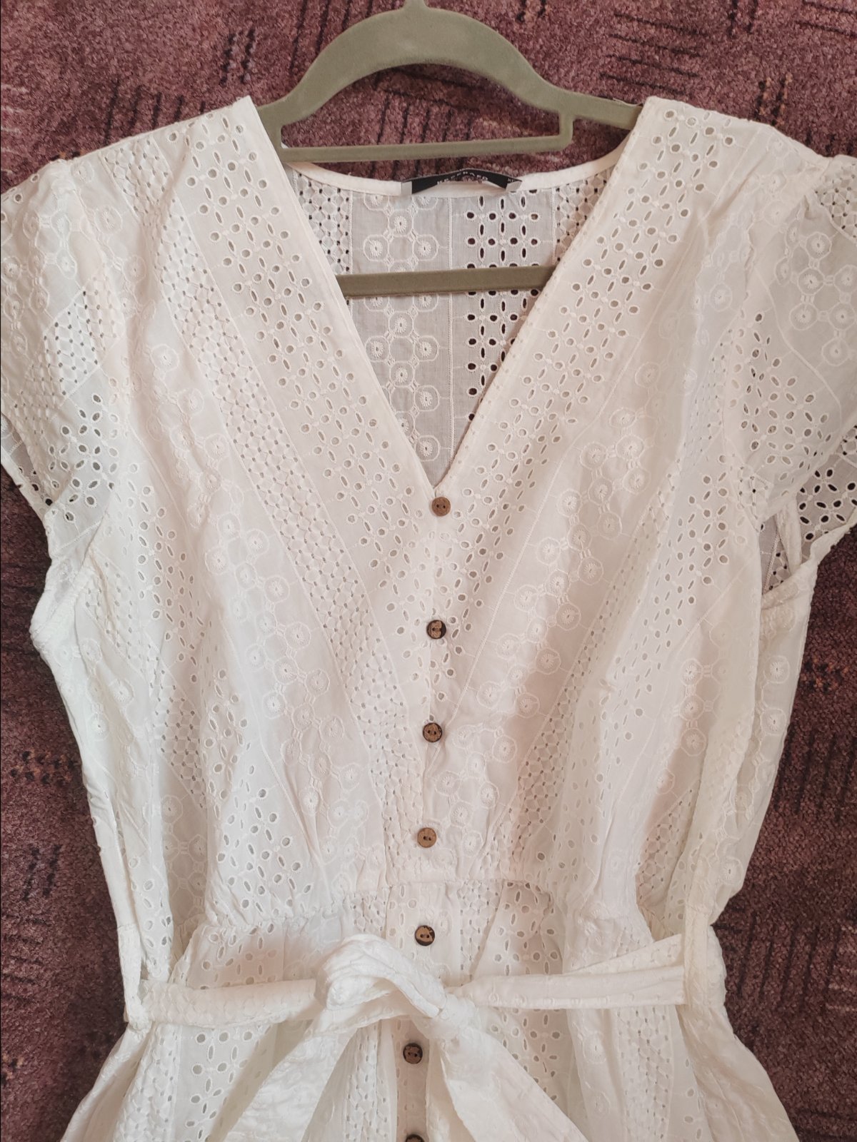Predám krásne upletove letne šaty na ramienka Sú nové s visačkou. Nesadla mi veľkosť. Rozmer-dlžka-116cm,šírka 34cm