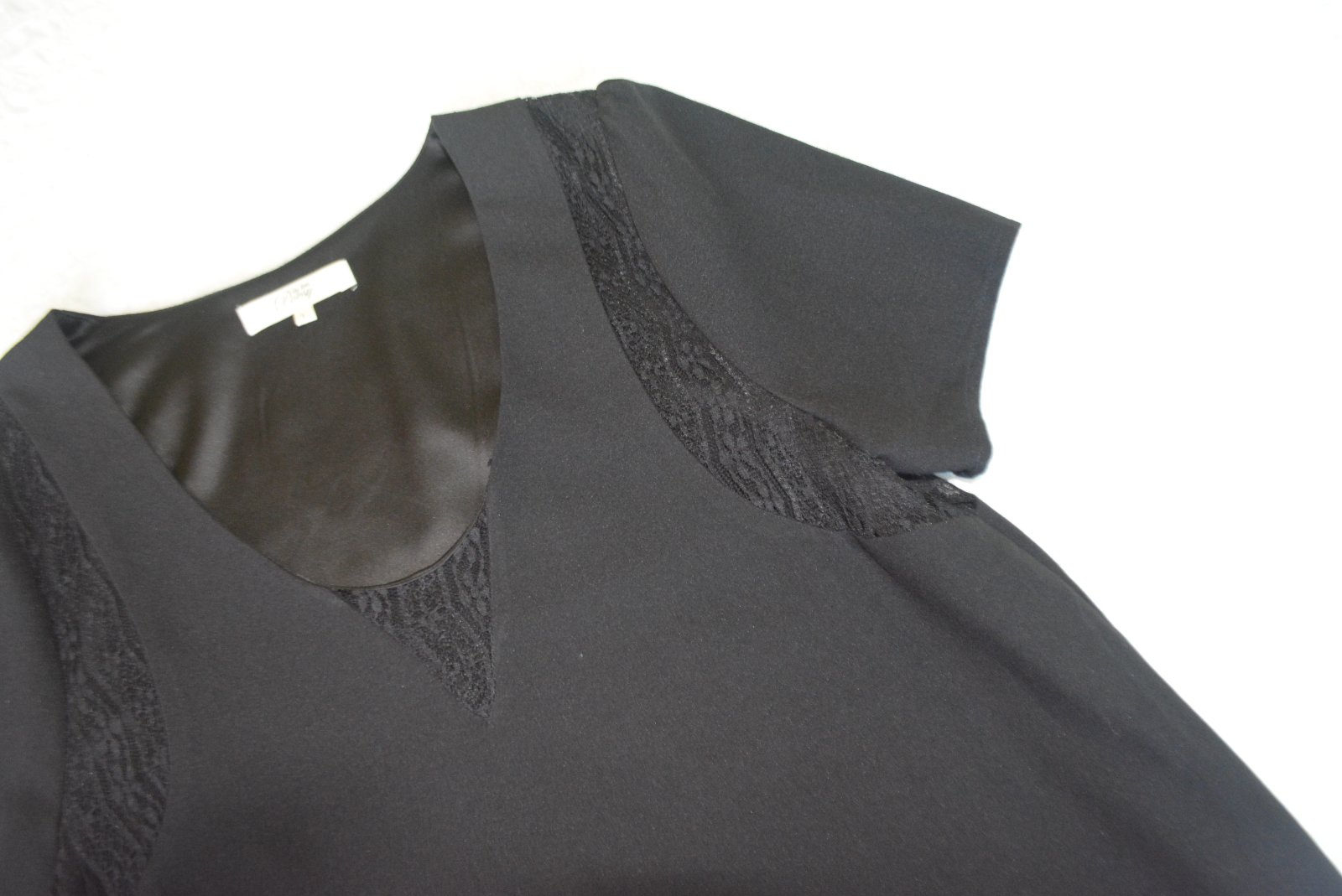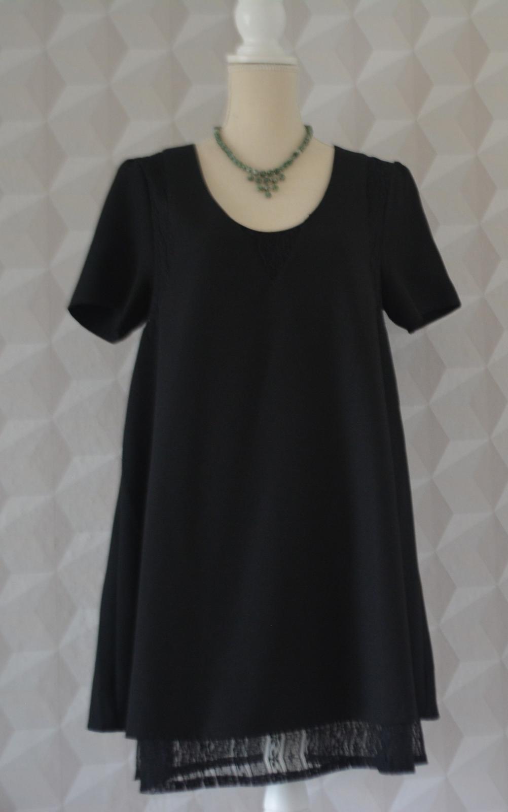 Malé čierne šaty aké by nemali chýbať v šatníku. Značka Poesy, veľkosť označená L, sedia na M, či väčšie S, riaďte sa rozmermi: dĺžka 88cm spolu s podšitou čipkou, pod pazuchami 2x48cm, krátky rukávček.