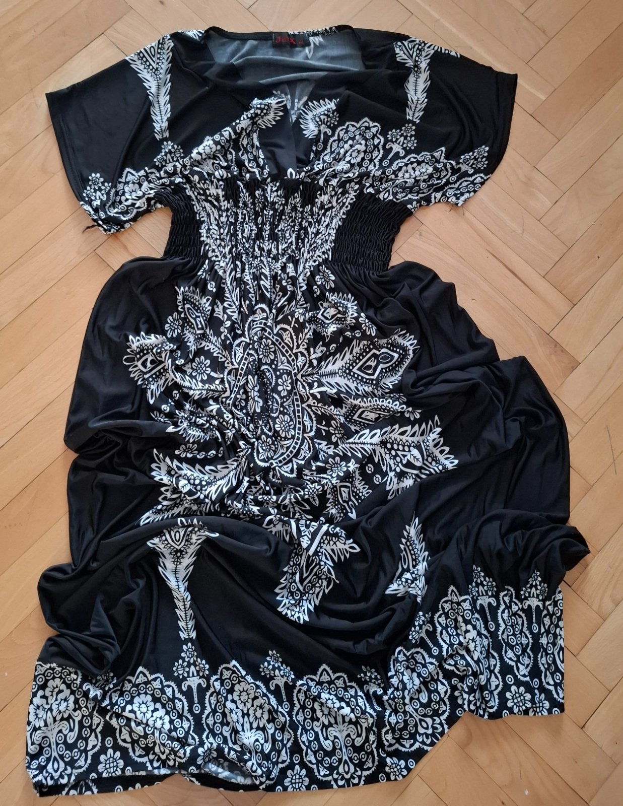 nevymieňam!!raz oblečené,dá sa nosiť aj ako sukňa aj ako šaty-dĺžka 121cm,šírka pod pazuchami 2x 39cm,pás 2x 31cm,sú polyesterové,sú bez štítka,nie sú elastické-nemajú poškodenia..kuk aj na iné moj...