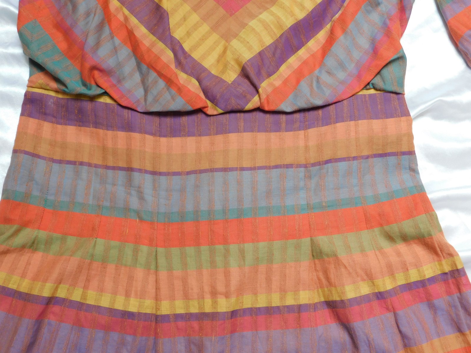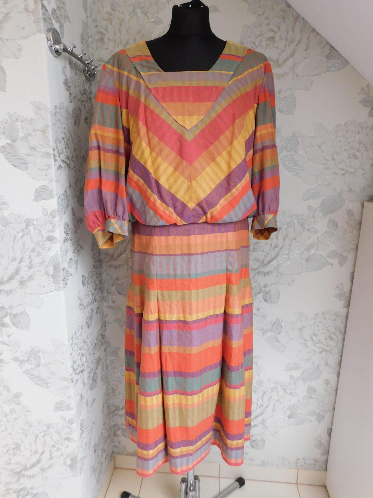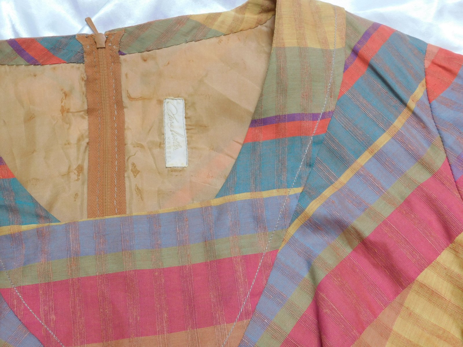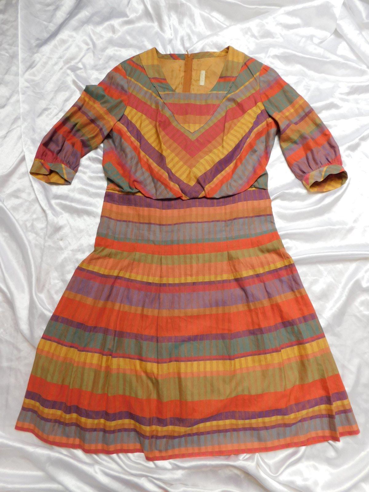 Luxusne vintage šaty,multi potlač,s podšivkou,vzadu zips,preštepovane zahyby,na konci trošku roztiahnute šviky,inak super stav. se1
