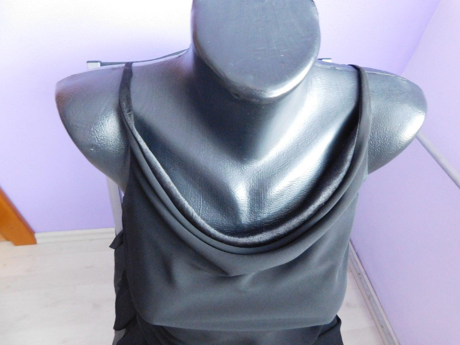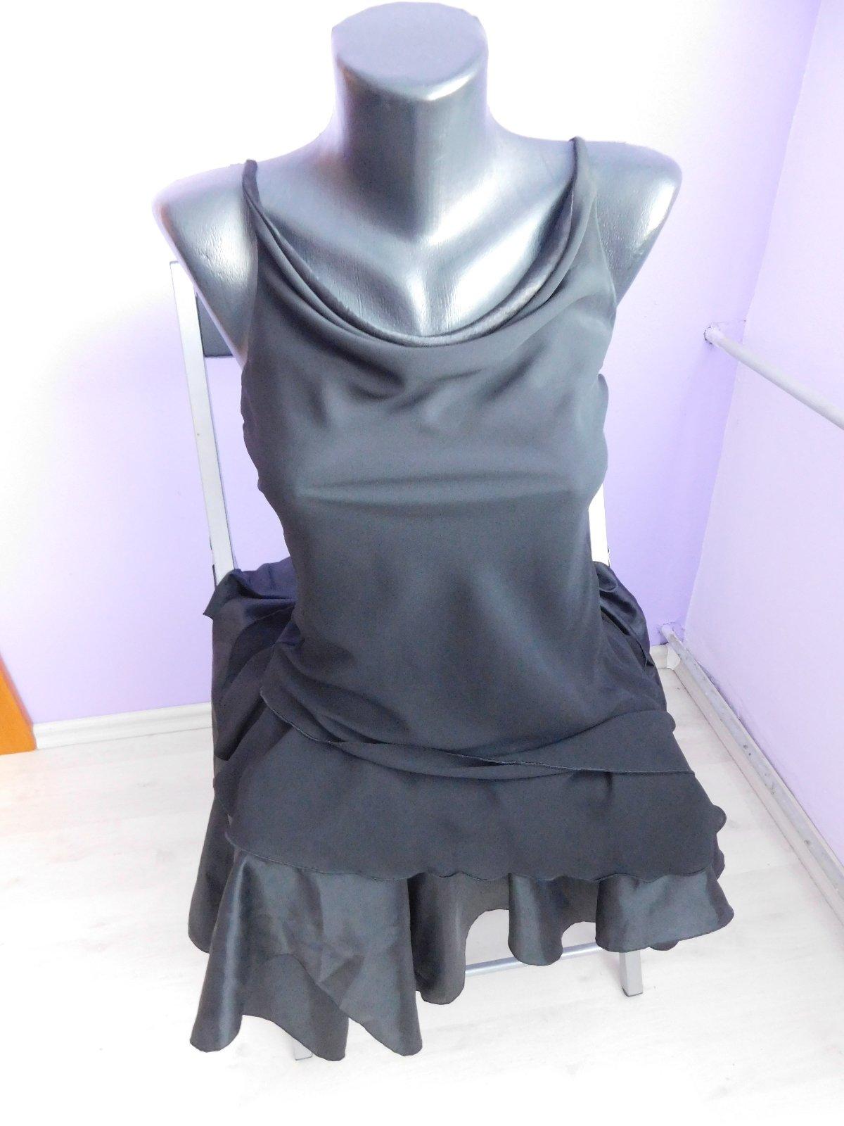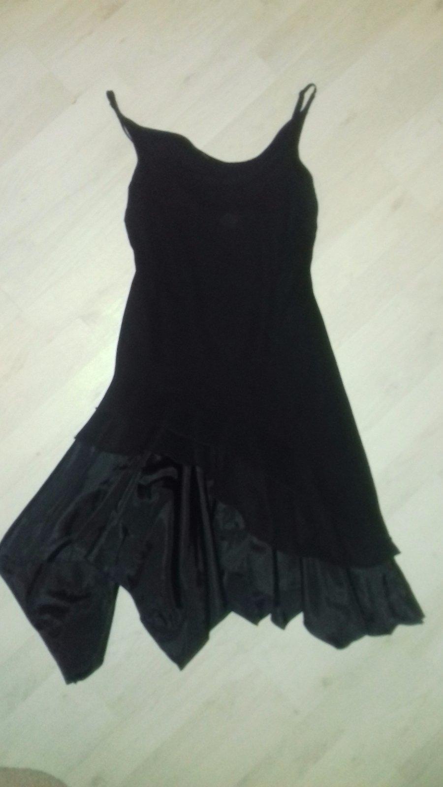 Krasne kokteilove cierne saty len vyskusane. Na niektorych miestach cipka vid foto. Top stav Celkova dlzka 69,5 cm. Sirka hore 32 cm, pod prsiami 31 cm, boky 36 cm a uplne dole 35 cm. Su dost elast...
