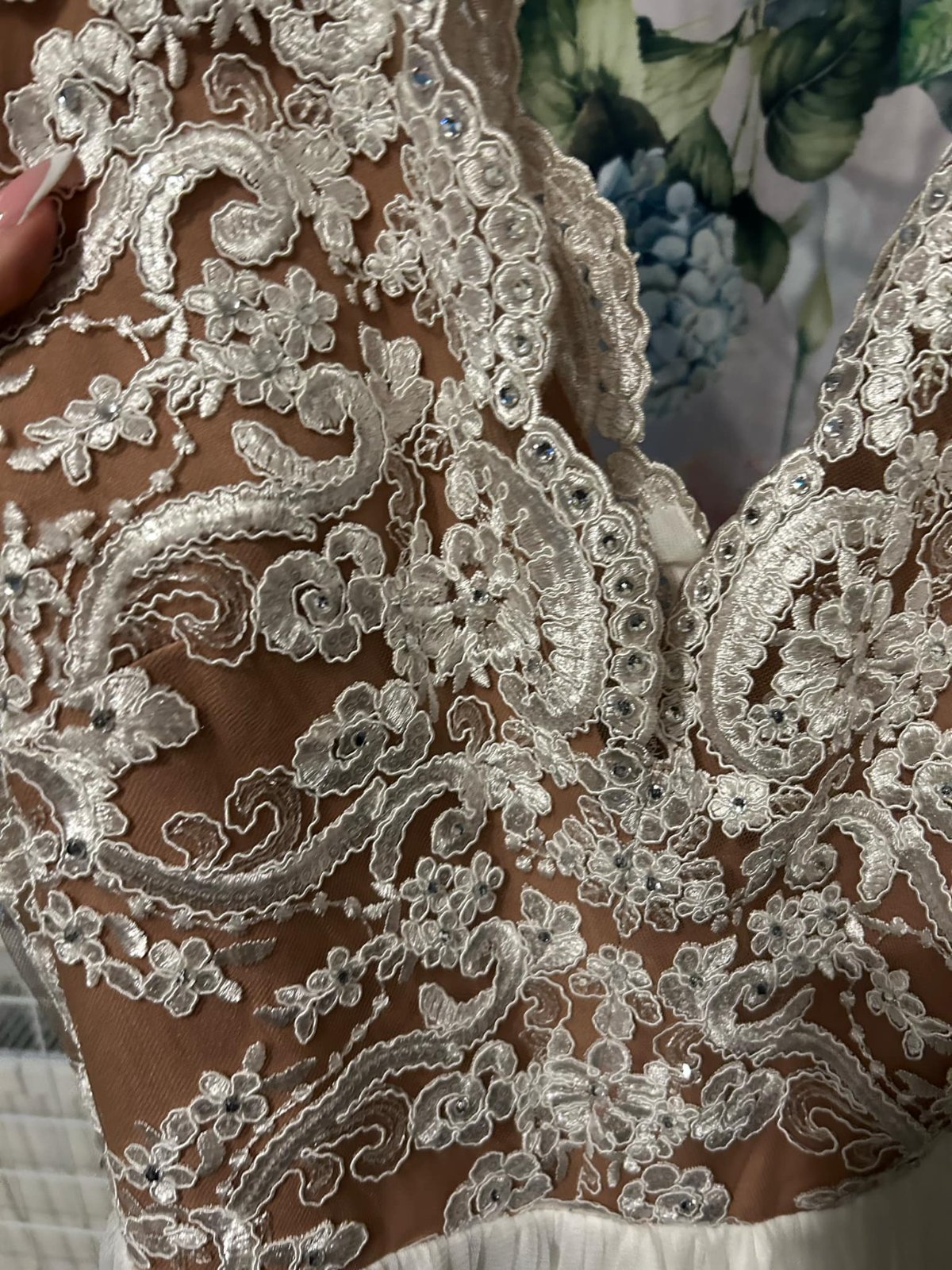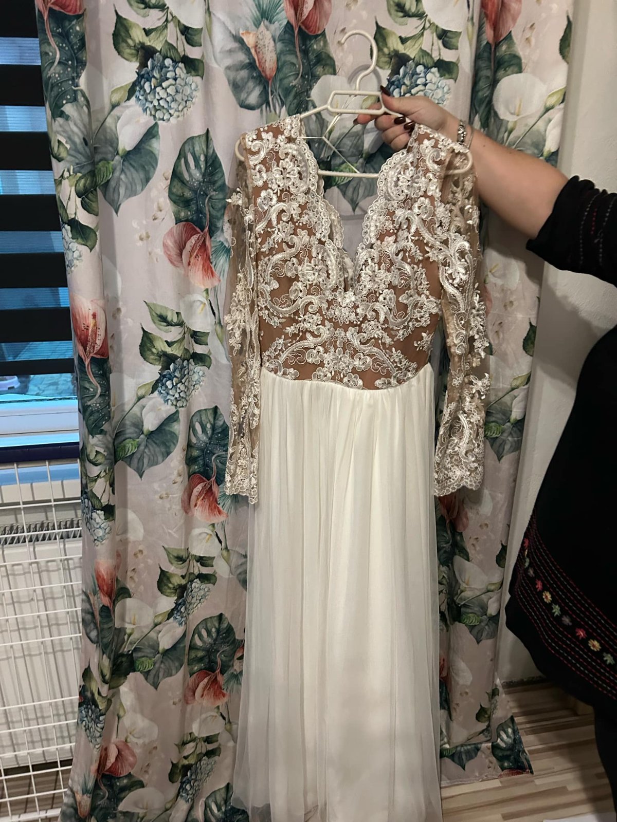 Prekrásne svadobné šaty. Šité boli pôvodne na mieru prvej majiteľke, ja som ich mala druhýkrát na našej svadbe. Sedia úžasne. Sú ľahučké korzet je pohodlný, vystužený, robia krásny dekolt aj pás a ...
