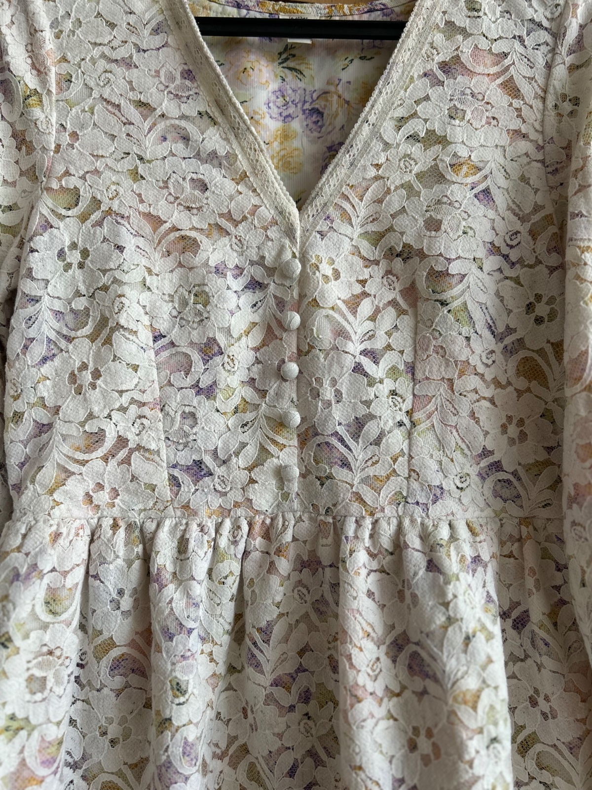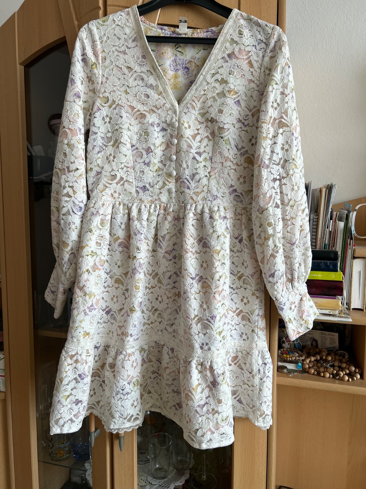 Krémové vyšívané šaty značky Vila. Top stav. Spodné šaty sú elastické. Dlhý rukáv. Veľkosť S. Miery hrudník: 2x47cm dĺžka: 117cm
