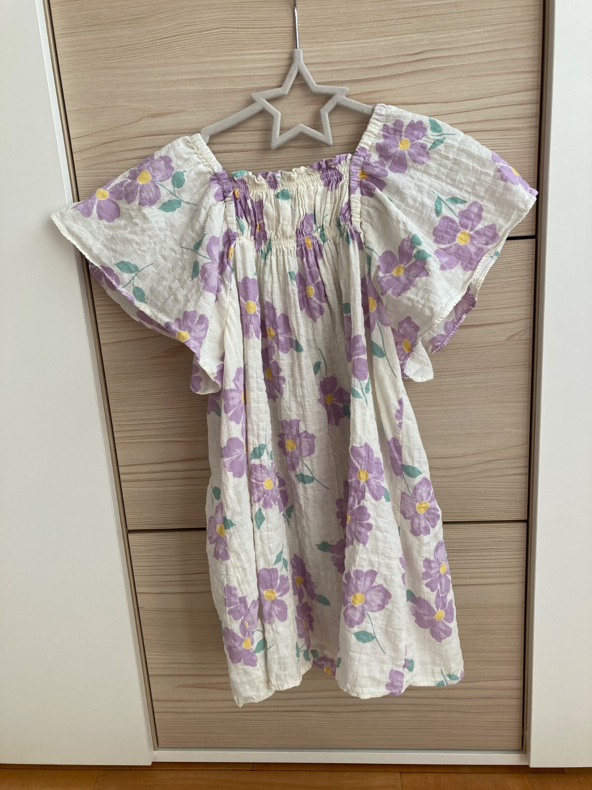 Ponukam na predaj letne saty Zara s potlacou fialových kvetov. Ľahká, vzdušná latka, perfektná na horúce letne dni. Ľahko sa obliekajú. Kupované nové, oblečené príležitostne 1 dieťaťom. Bez poškodení či známok nosenia, ako nové. Visacka udava velkost 115, dcérka nosila ako 110 a ďalšie leto ako 116.