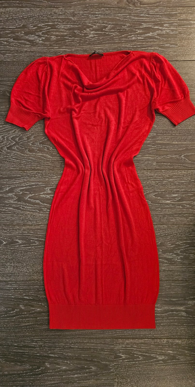 Damske saty s kratkym rukavom z jemneho upletu prijemneho na dotyk. Rozmery na foto. Oblecene raz. Stitok som odstrihla, takze material neviem. Top stav, bez poskodeni, nevytahane. Su zaradene v "mini", ale nie su, treba pozriet nafotene rozmery. Krasna "vianocna" cervena. (PC bola 89e).