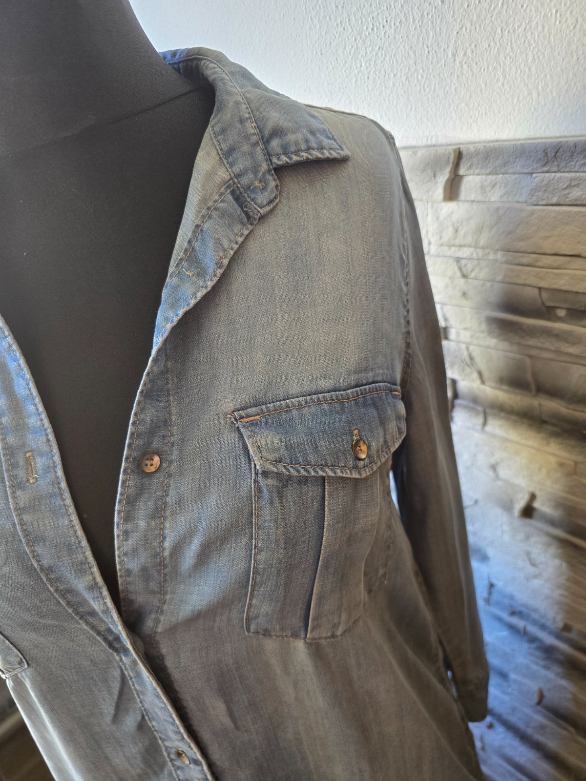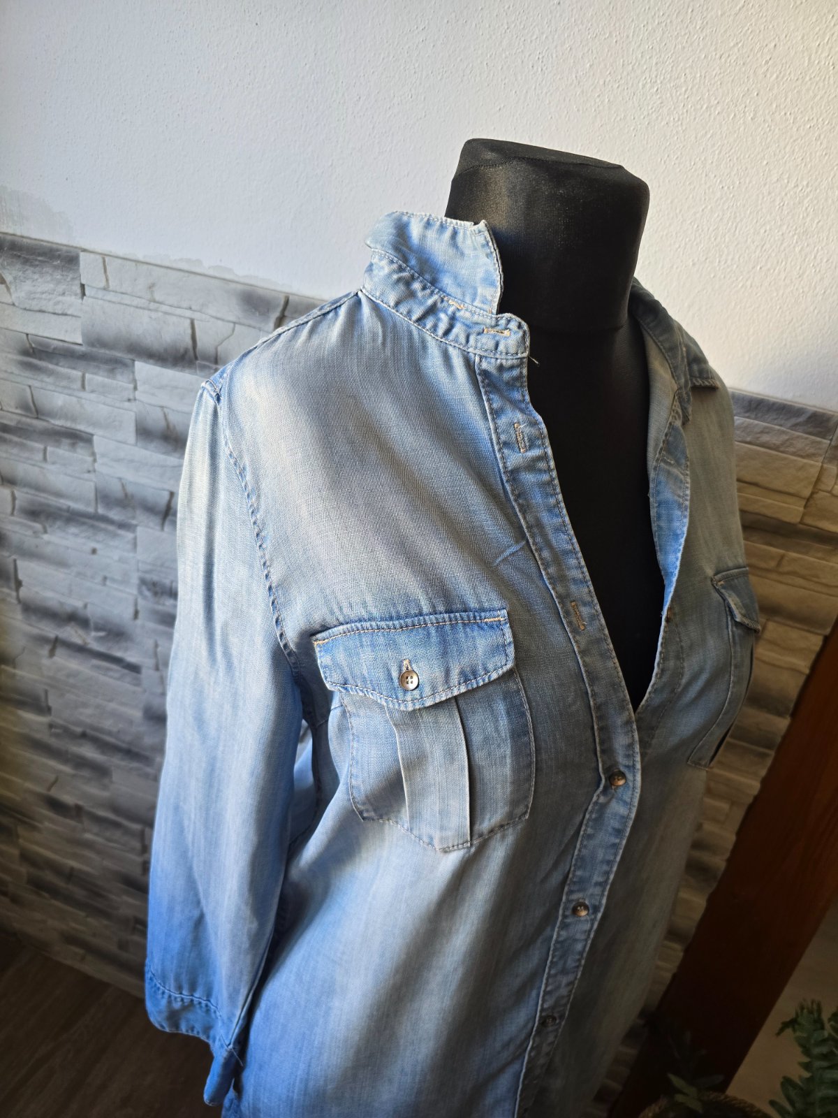 Košeľové bavlnené riflové šaty Esmara v. 40, pekne prepracované, kopa detailov, bočné vrecká, 100% bavlna - pevnejšia, nie tenká, nenosené, iba opraté. Miery: predný diel najdlhšia časť: 85cm, vza...
